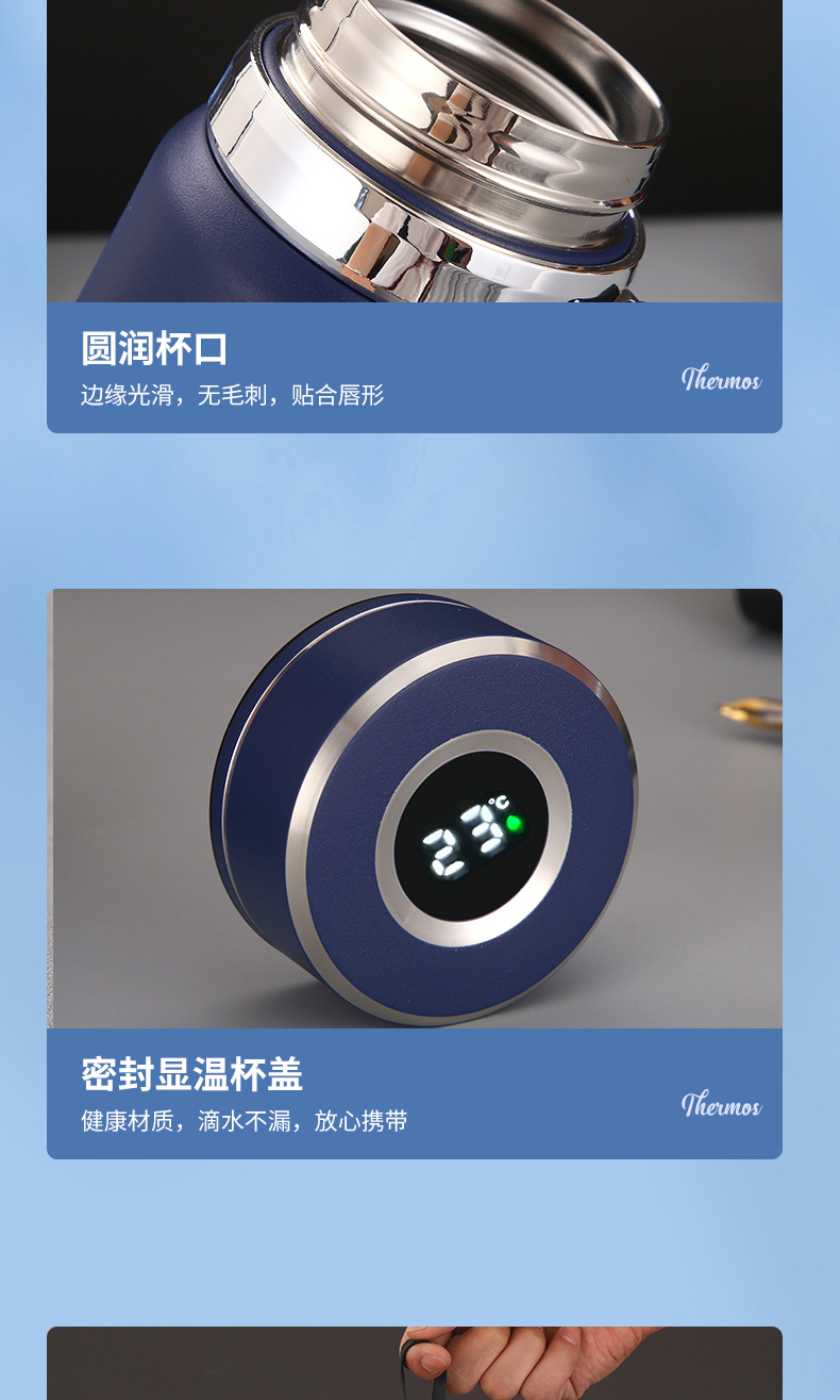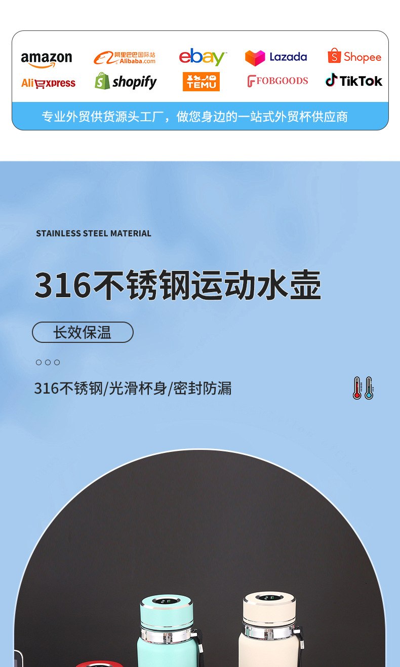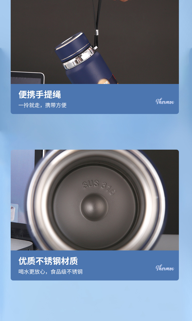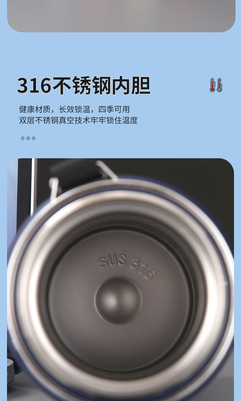 대용량 316 스테인리스 온도 표시 보온병 야외 휴대용 스포츠 물병 차량용 패션 스트랩 보온병스토어 가기