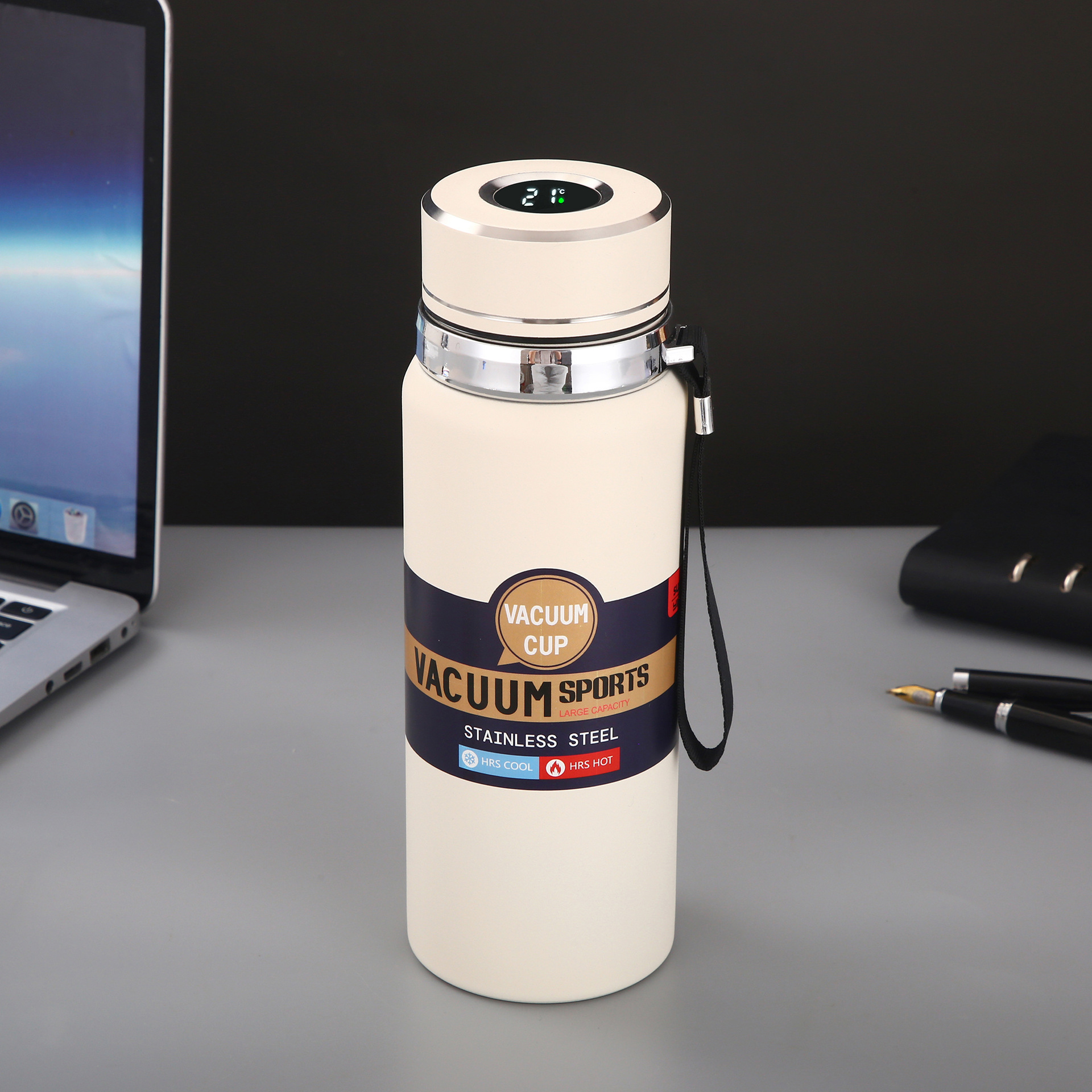 대용량 316 스테인리스 온도 표시 보온병 야외 휴대용 스포츠 물병 차량용 패션 스트랩 보온병