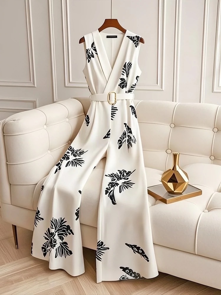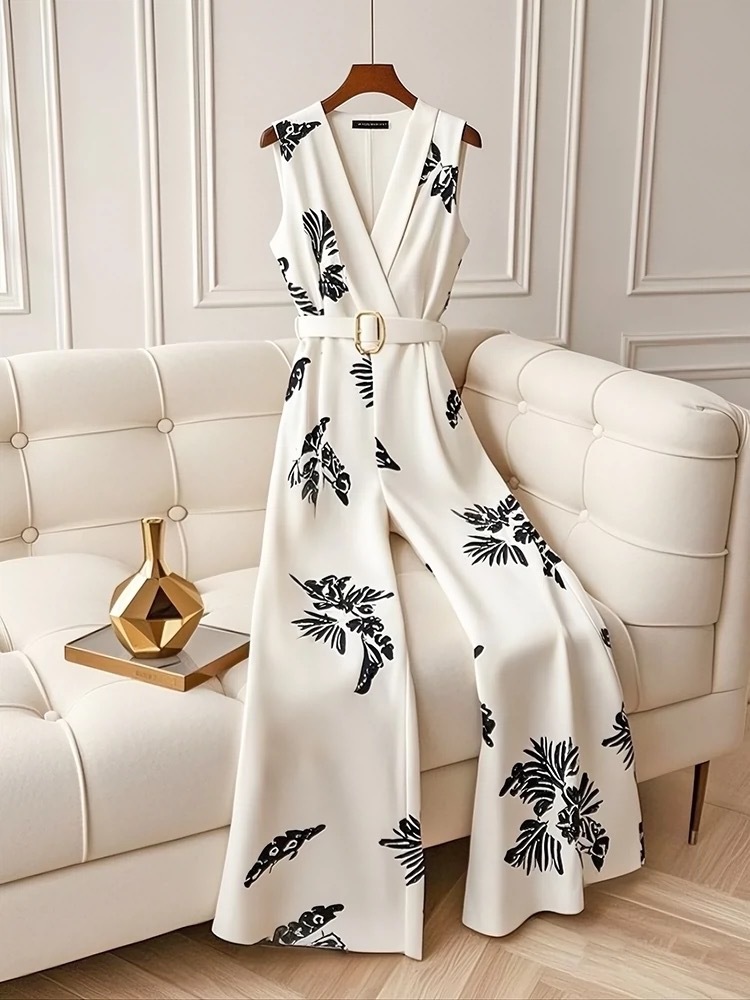 2025 여름 우아한 패션 고급 단단한 허리 모든 경기 슬리밍 높은 허리 인쇄 바지 작은 한 조각 바지