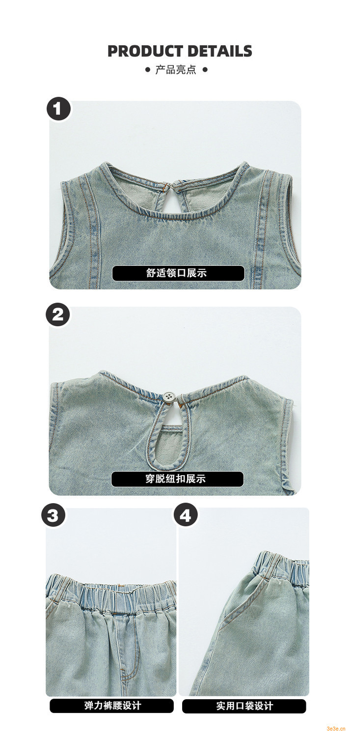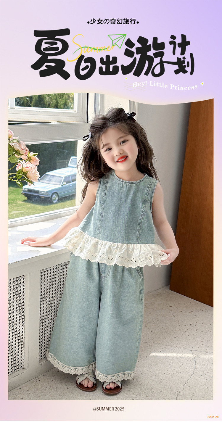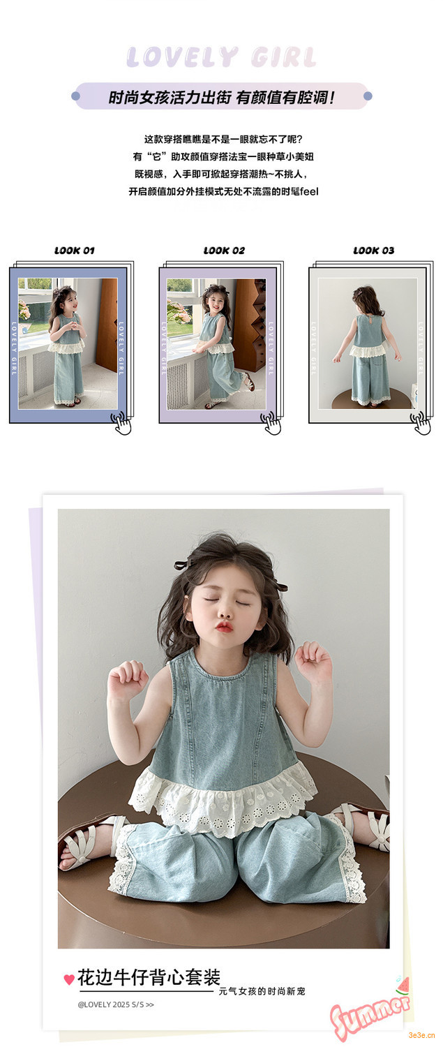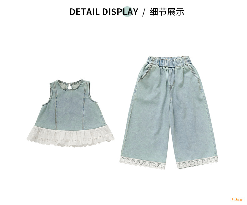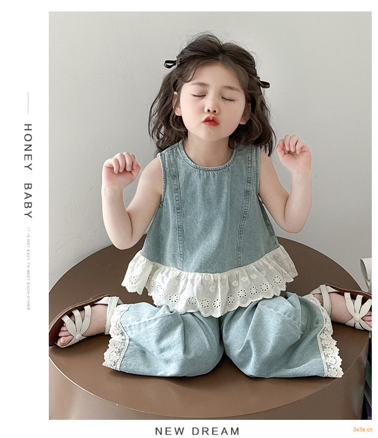 여자 여름 세트 2025 새로운 데님 레이스 세트 캐주얼 민소매 조끼 느슨한 넓은 다리 바지 투피스 세트스토어 가기