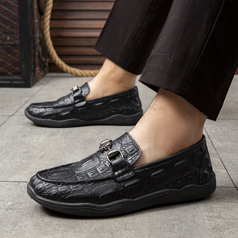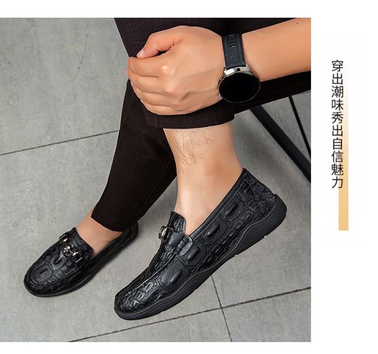 여름 신작 정품 가죽 캐주얼 통기성 남성 신발, 남성용 비니 신발, 악어 가죽 패턴 남성 신발, 드라이빙 슈즈, 플러스 사이즈 남성 신발스토어 가기