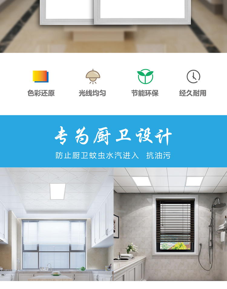 Lei Shiji 통합 천장 LED 조명 임베디드 주방 천장 플랫 조명 욕실 화장실 욕실 알루미늄 버클 플레이트 흡입스토어 가기