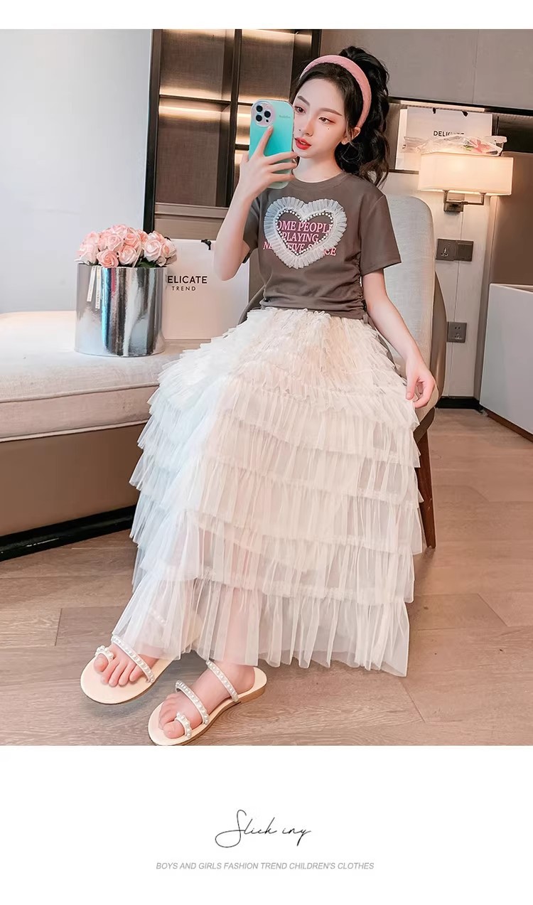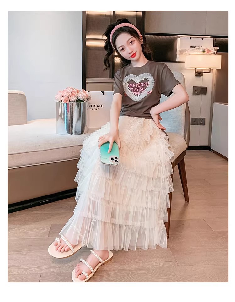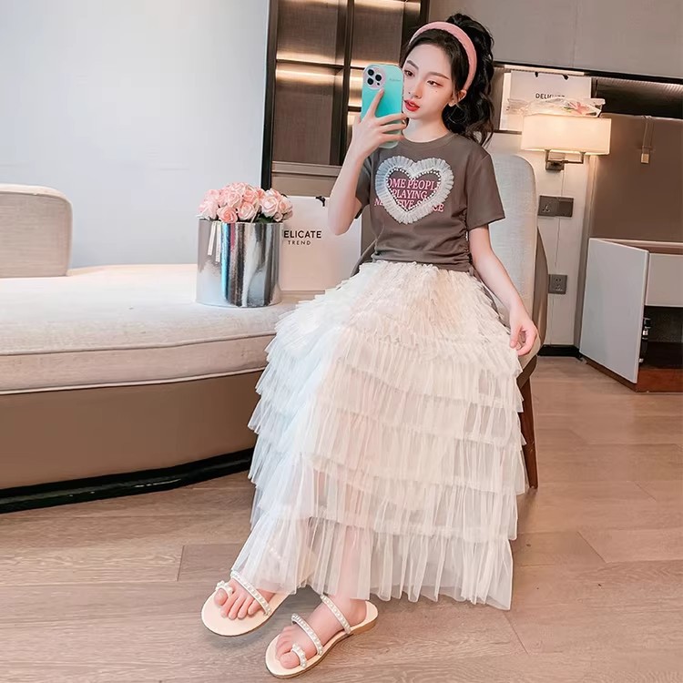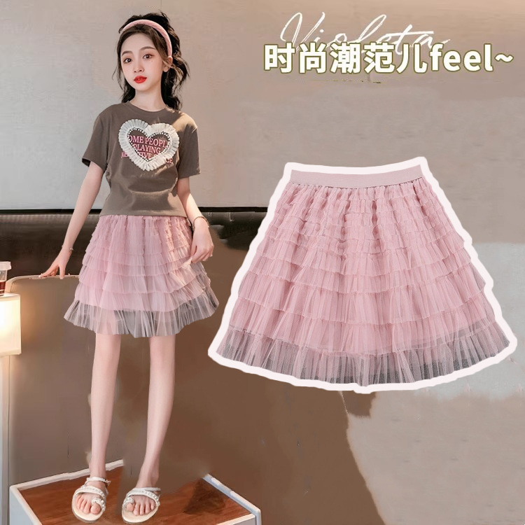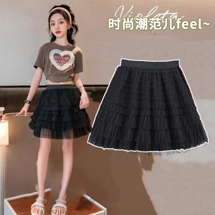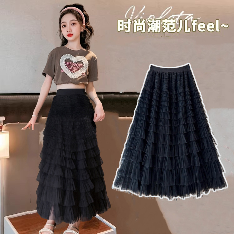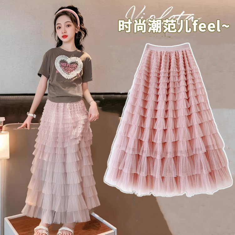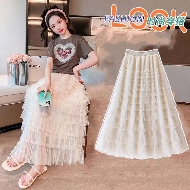 여아 하프 길이 거즈 스커트 정장, 여름 드레스, 큰 어린이 케이크 스커트, 롱 스커트, 공주 스커트, 메쉬 미디 스커트, 여성용 해변 스커트