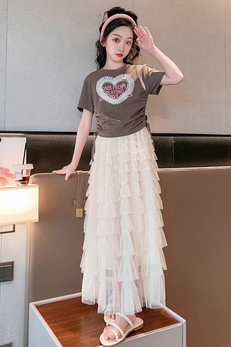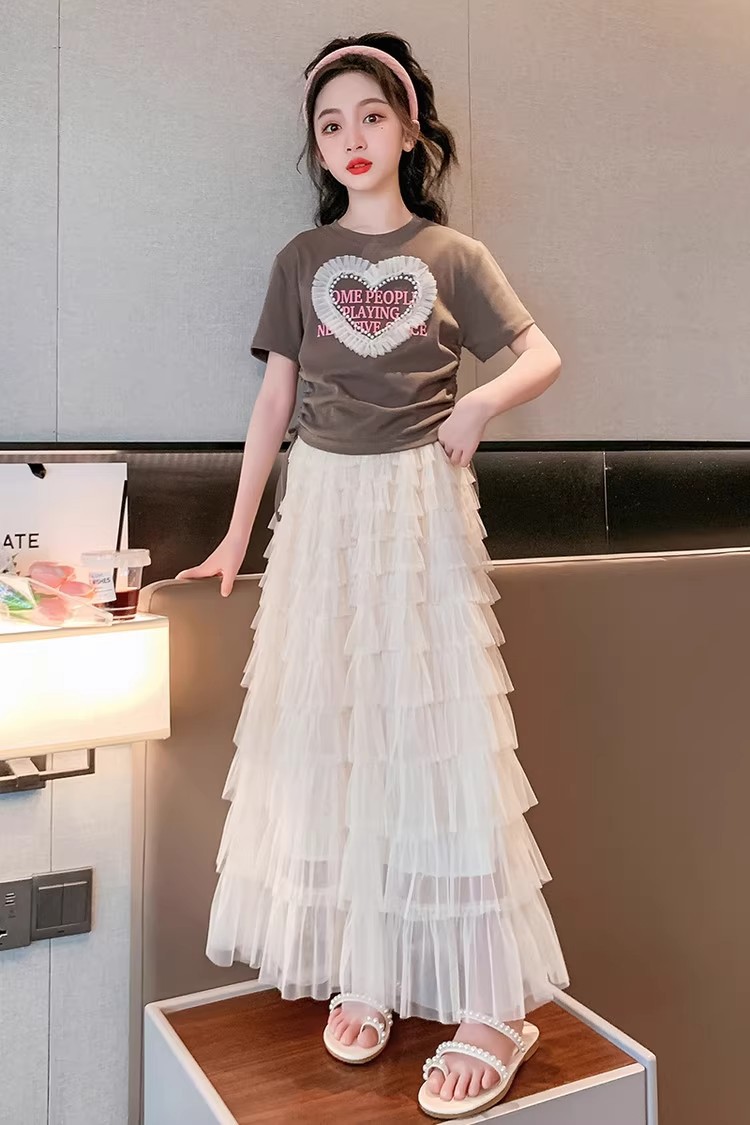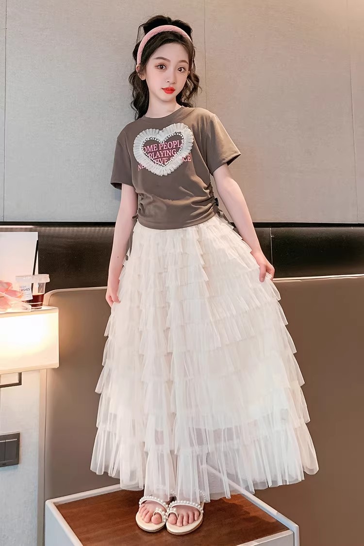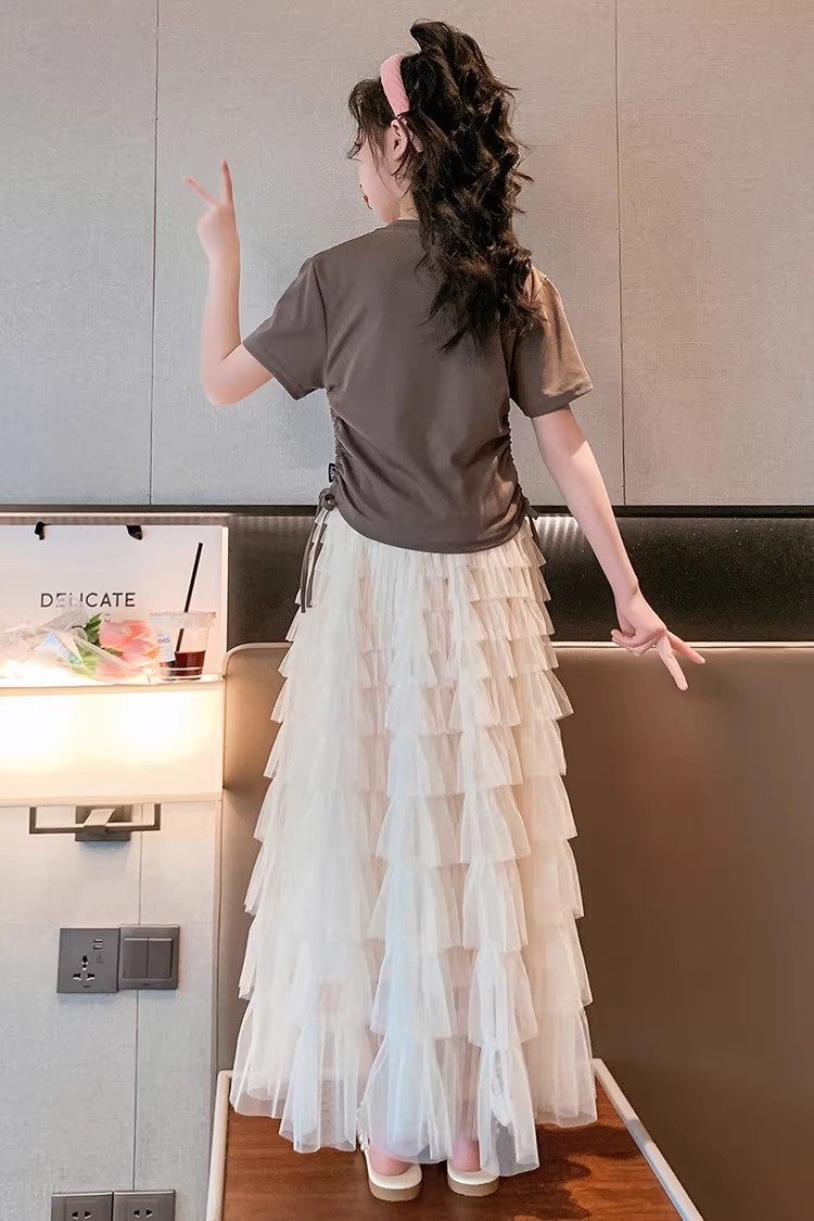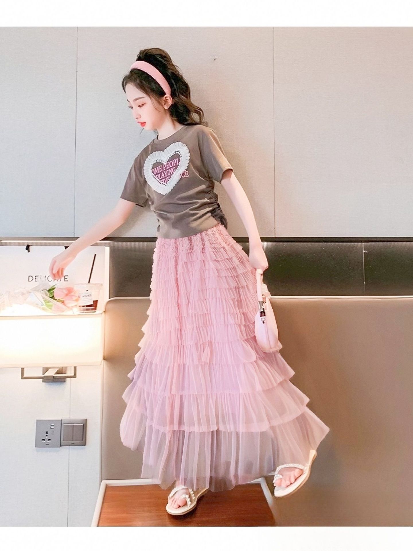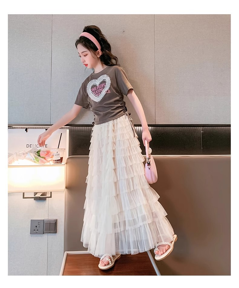 여아 하프 길이 거즈 스커트 정장, 여름 드레스, 큰 어린이 케이크 스커트, 롱 스커트, 공주 스커트, 메쉬 미디 스커트, 여성용 해변 스커트