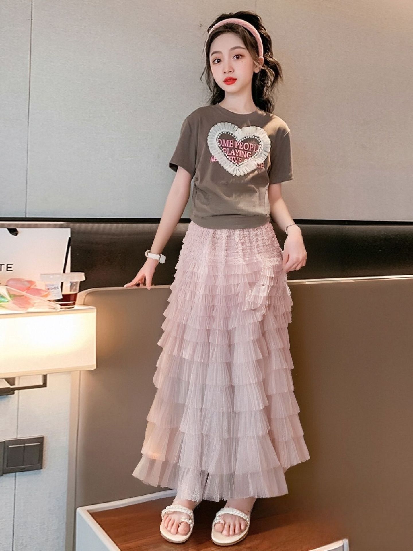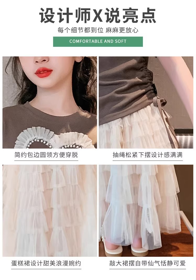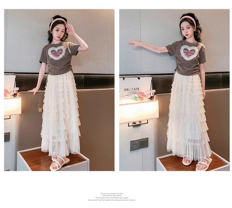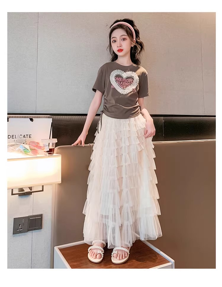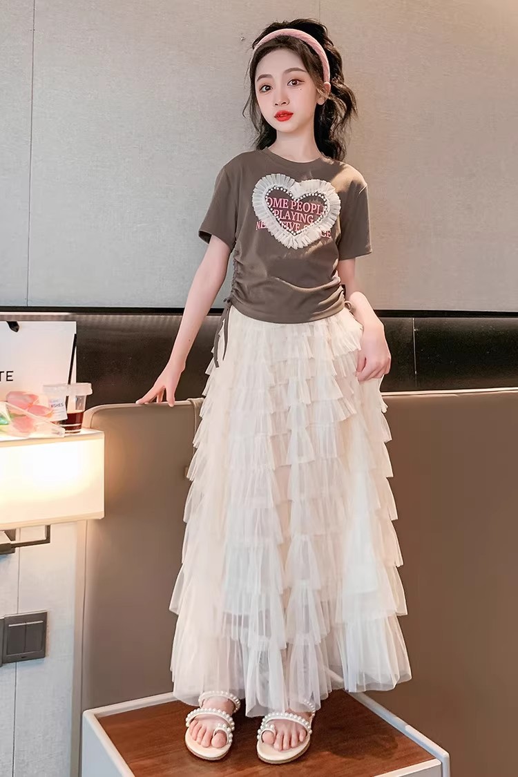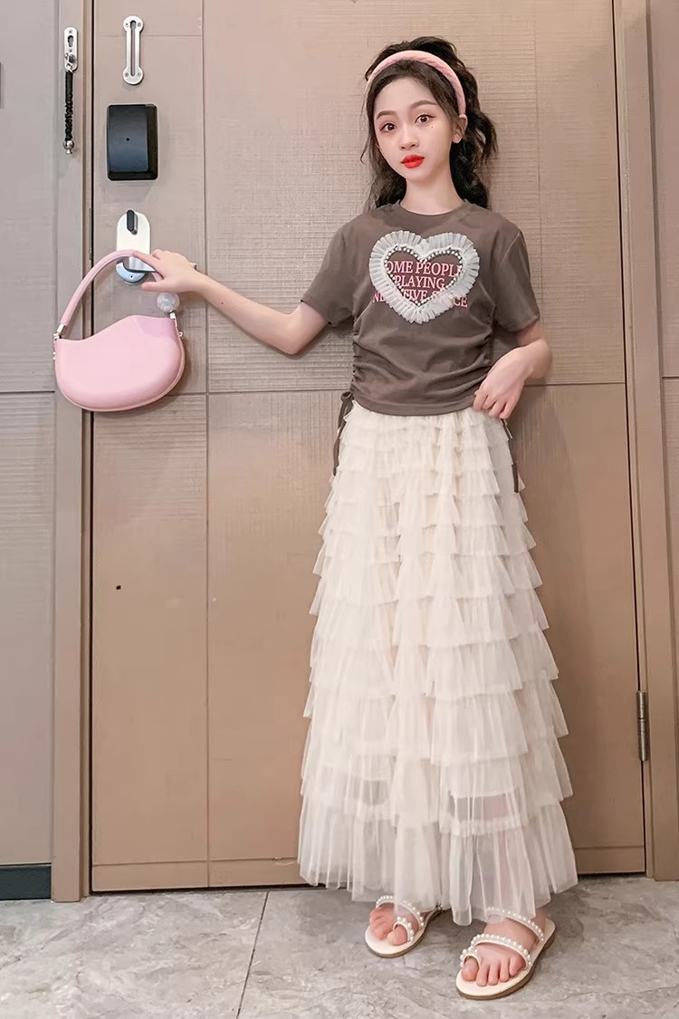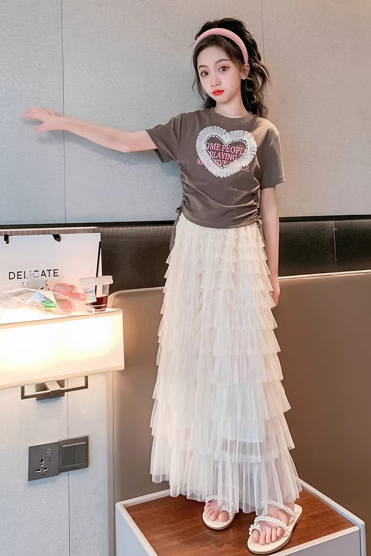 여아 하프 길이 거즈 스커트 정장, 여름 드레스, 큰 어린이 케이크 스커트, 롱 스커트, 공주 스커트, 메쉬 미디 스커트, 여성용 해변 스커트