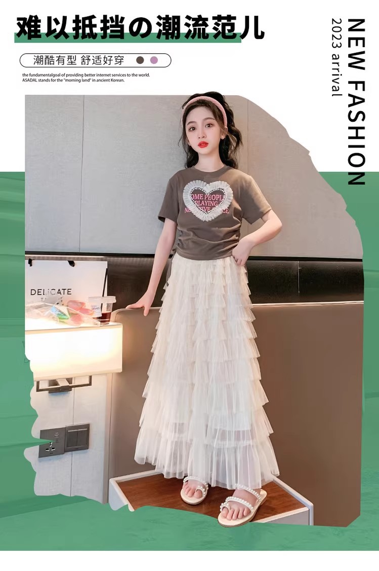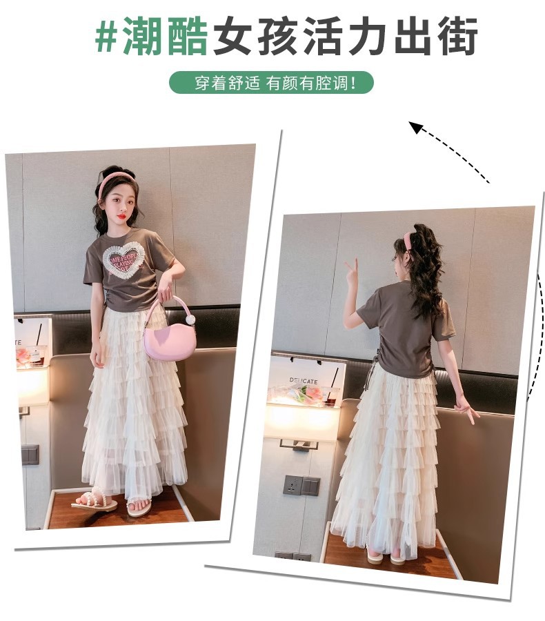 여아 하프 길이 거즈 스커트 정장, 여름 드레스, 큰 어린이 케이크 스커트, 롱 스커트, 공주 스커트, 메쉬 미디 스커트, 여성용 해변 스커트스토어 가기