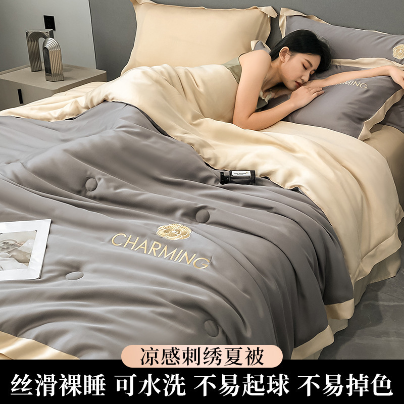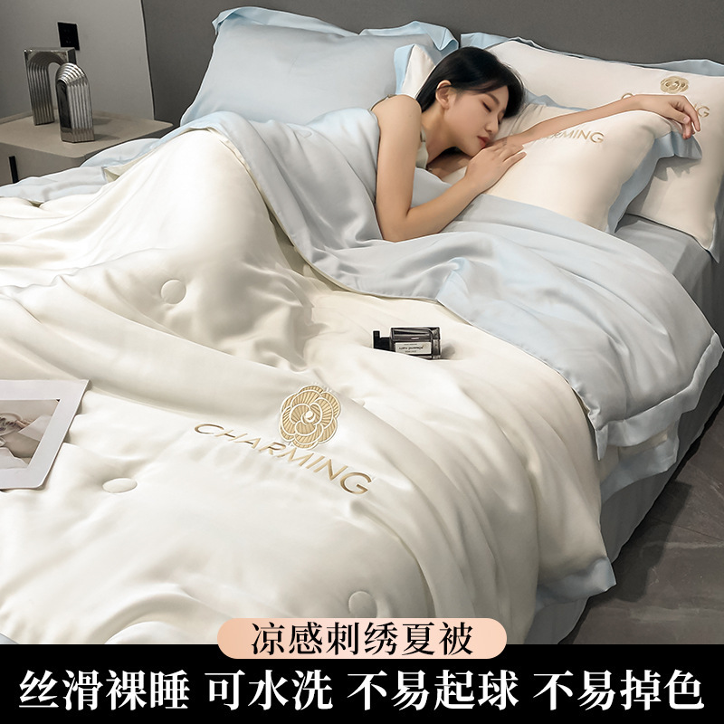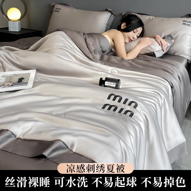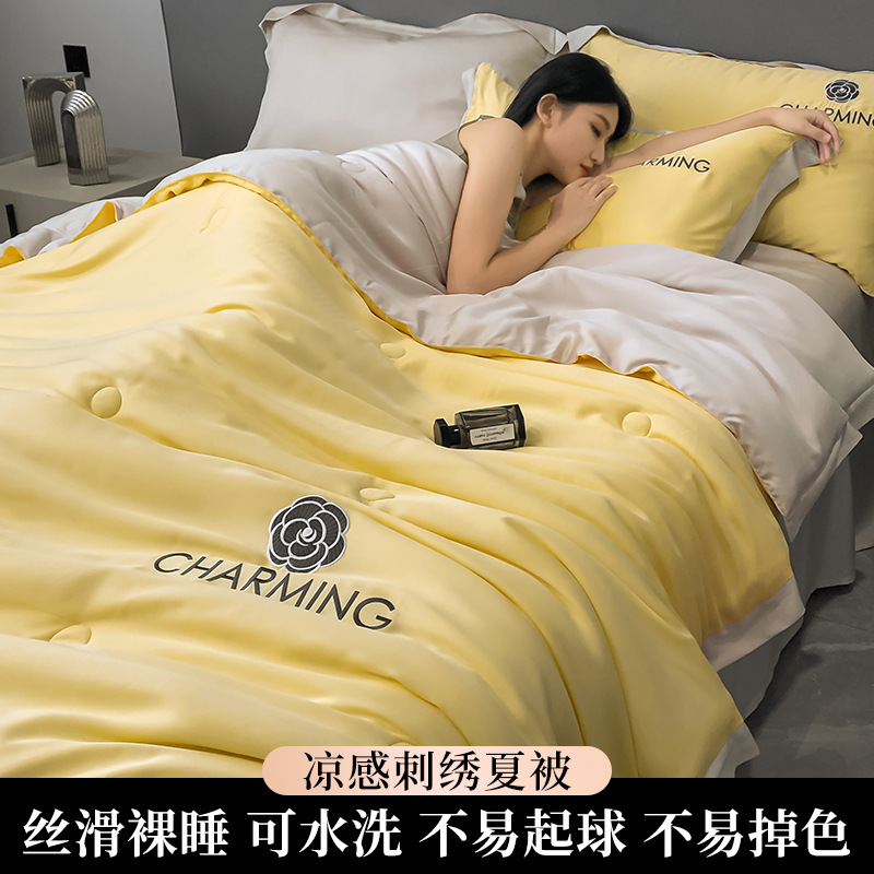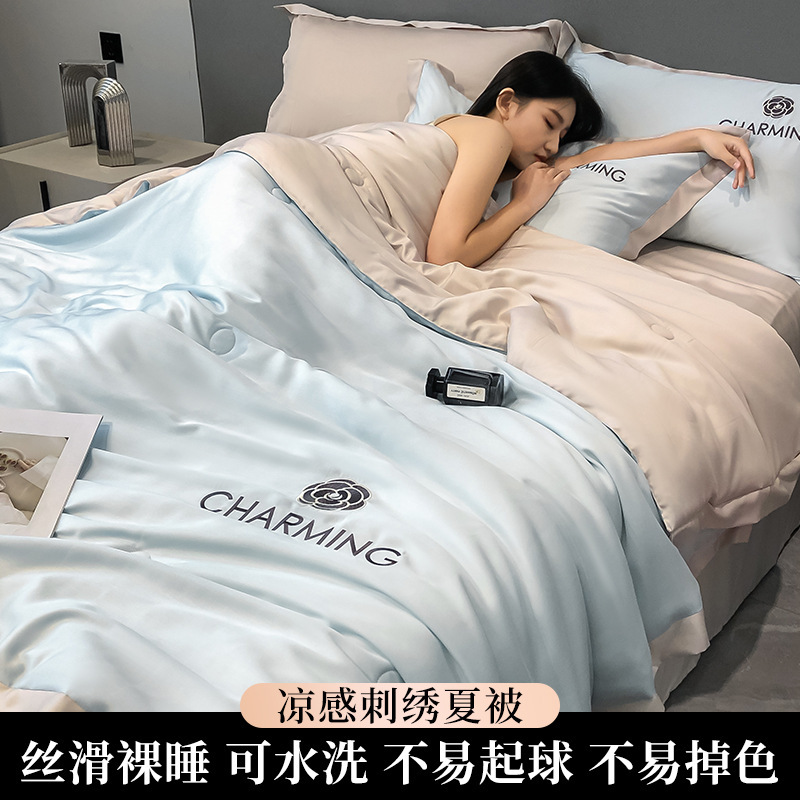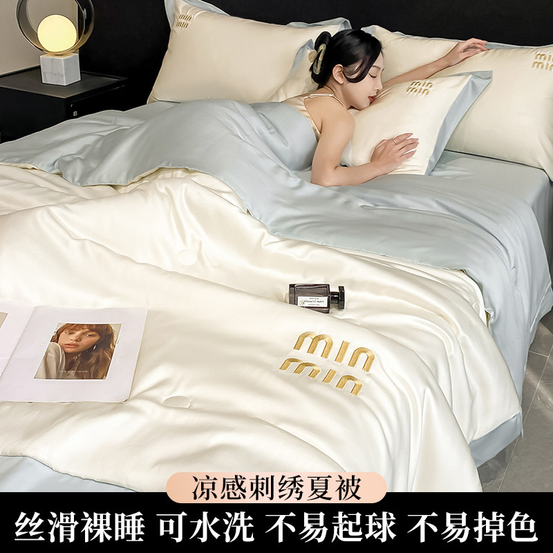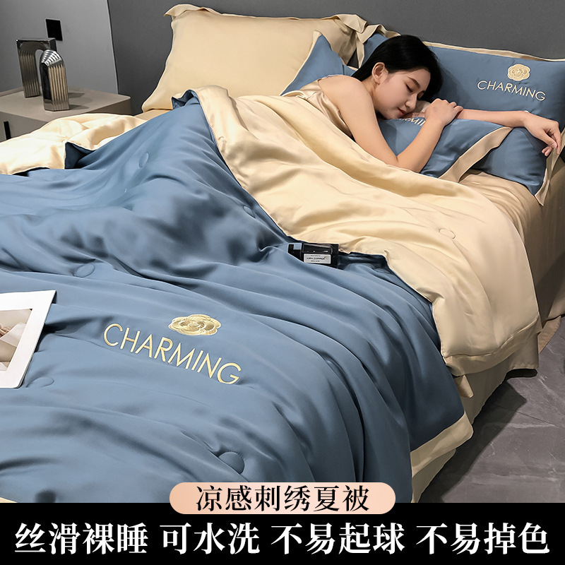 [동행자에게 인기] A급 워시드 아이스 실크 여름 이불 4피스 여름 시원한 이불은 벌거벗고 자는 데 적합합니다. 에어컨 이불은 시원한 느낌의 실크 여름 얇은 이불입니다.스토어 가기