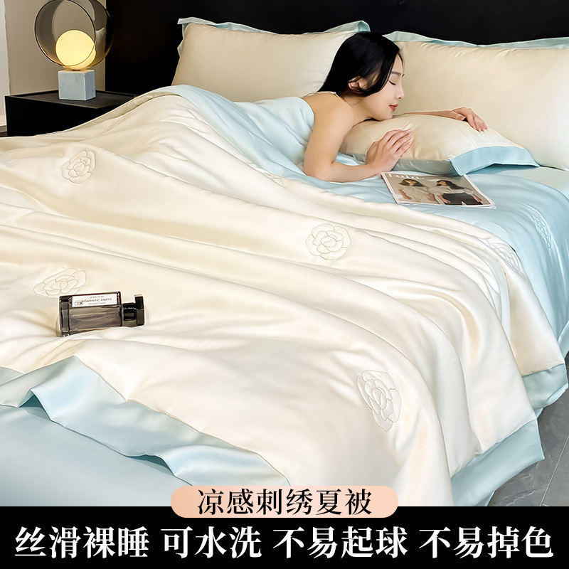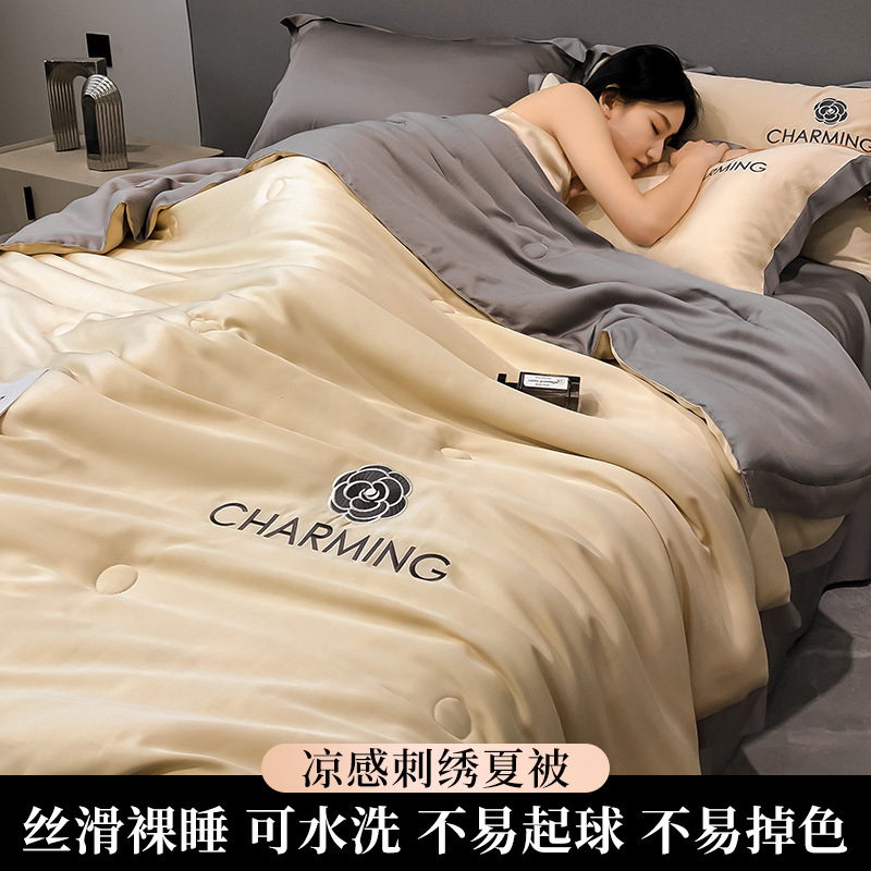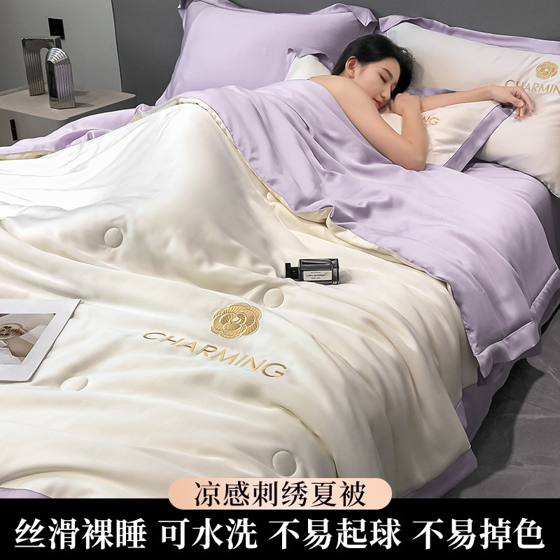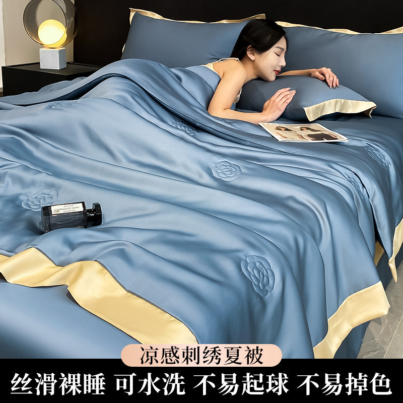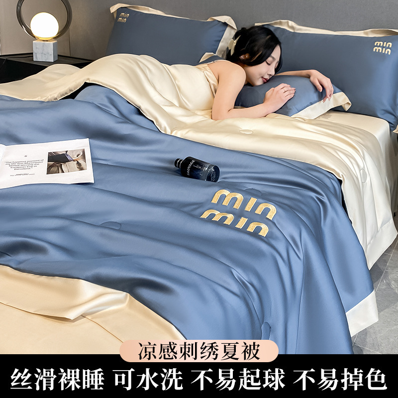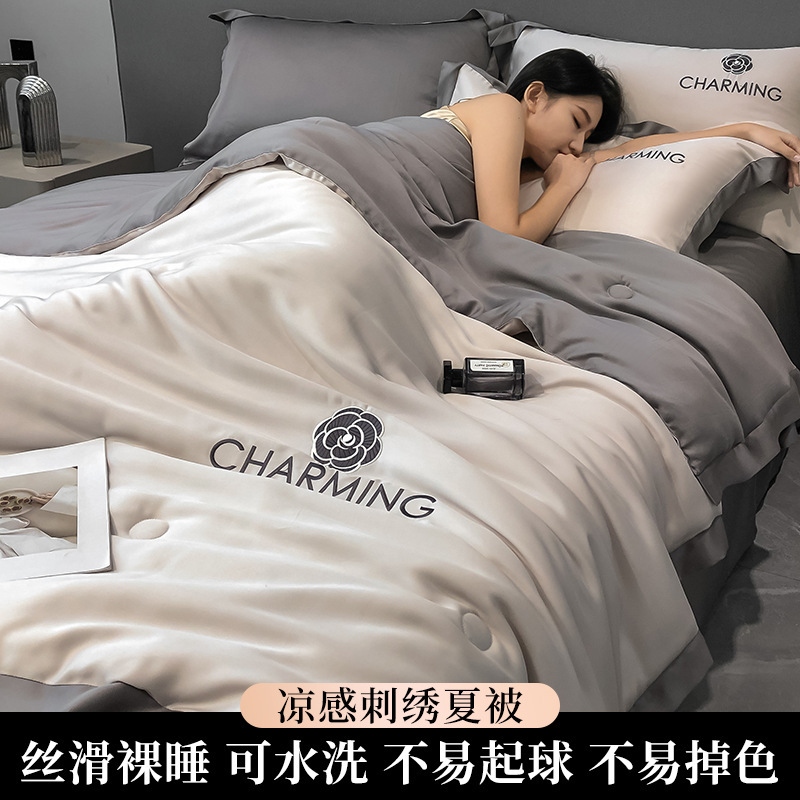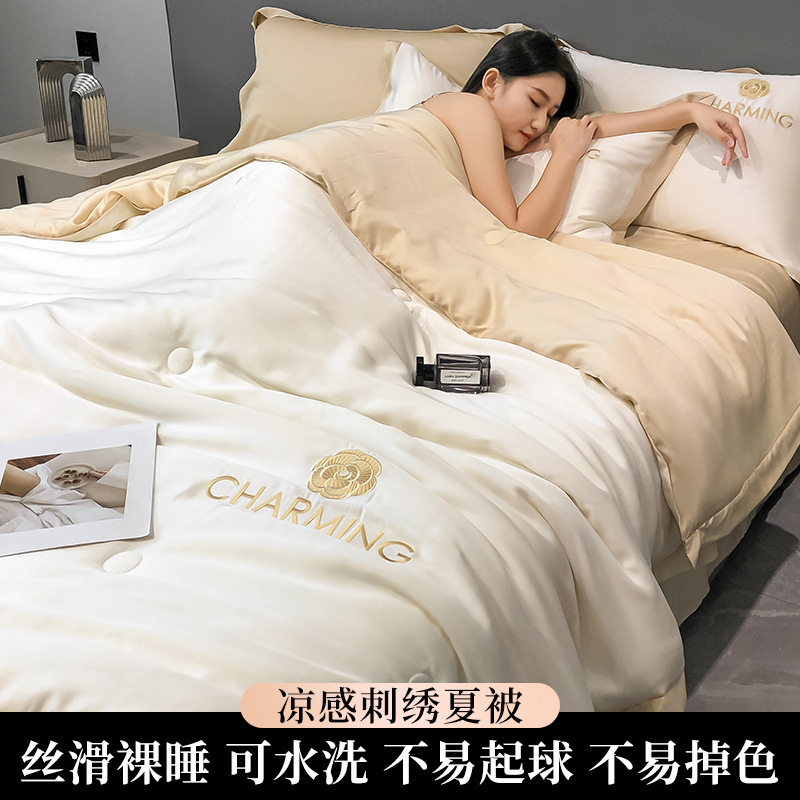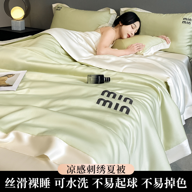 [동행자에게 인기] A급 워시드 아이스 실크 여름 이불 4피스 여름 시원한 이불은 벌거벗고 자는 데 적합합니다. 에어컨 이불은 시원한 느낌의 실크 여름 얇은 이불입니다.스토어 가기