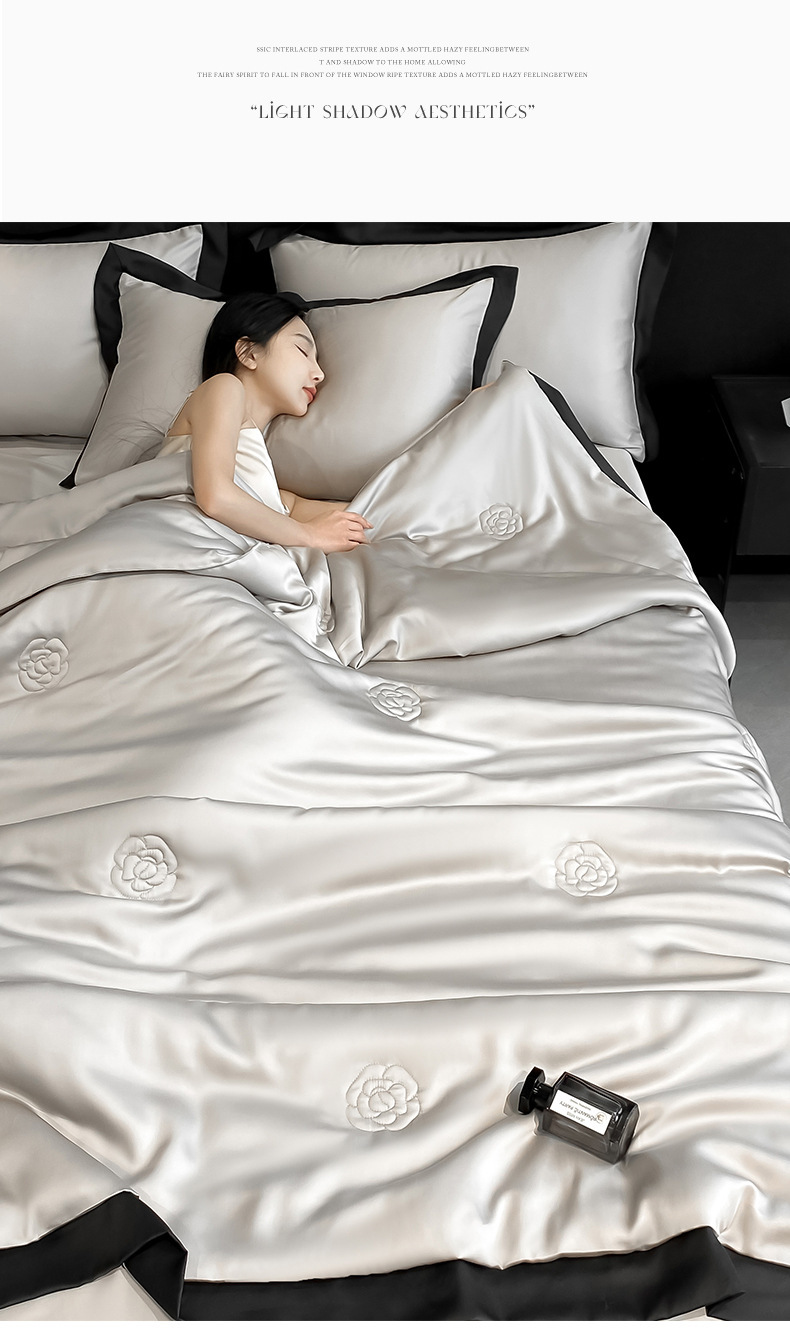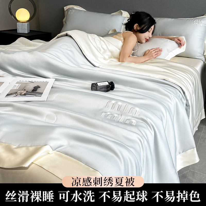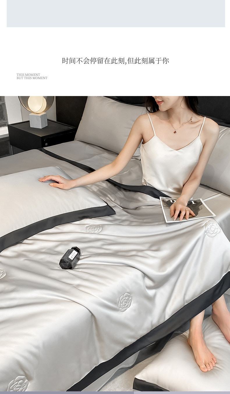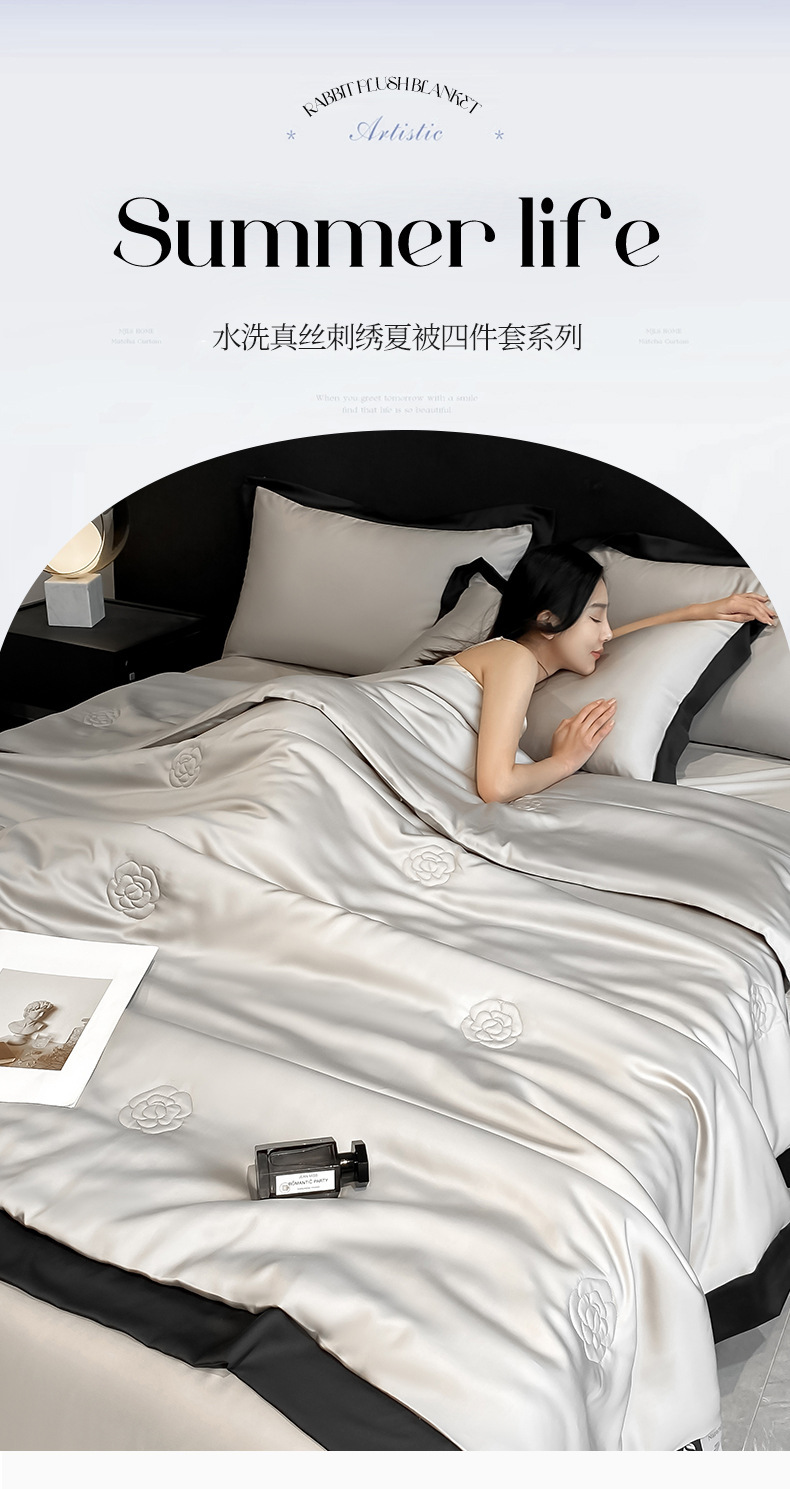 [동행자에게 인기] A급 워시드 아이스 실크 여름 이불 4피스 여름 시원한 이불은 벌거벗고 자는 데 적합합니다. 에어컨 이불은 시원한 느낌의 실크 여름 얇은 이불입니다.