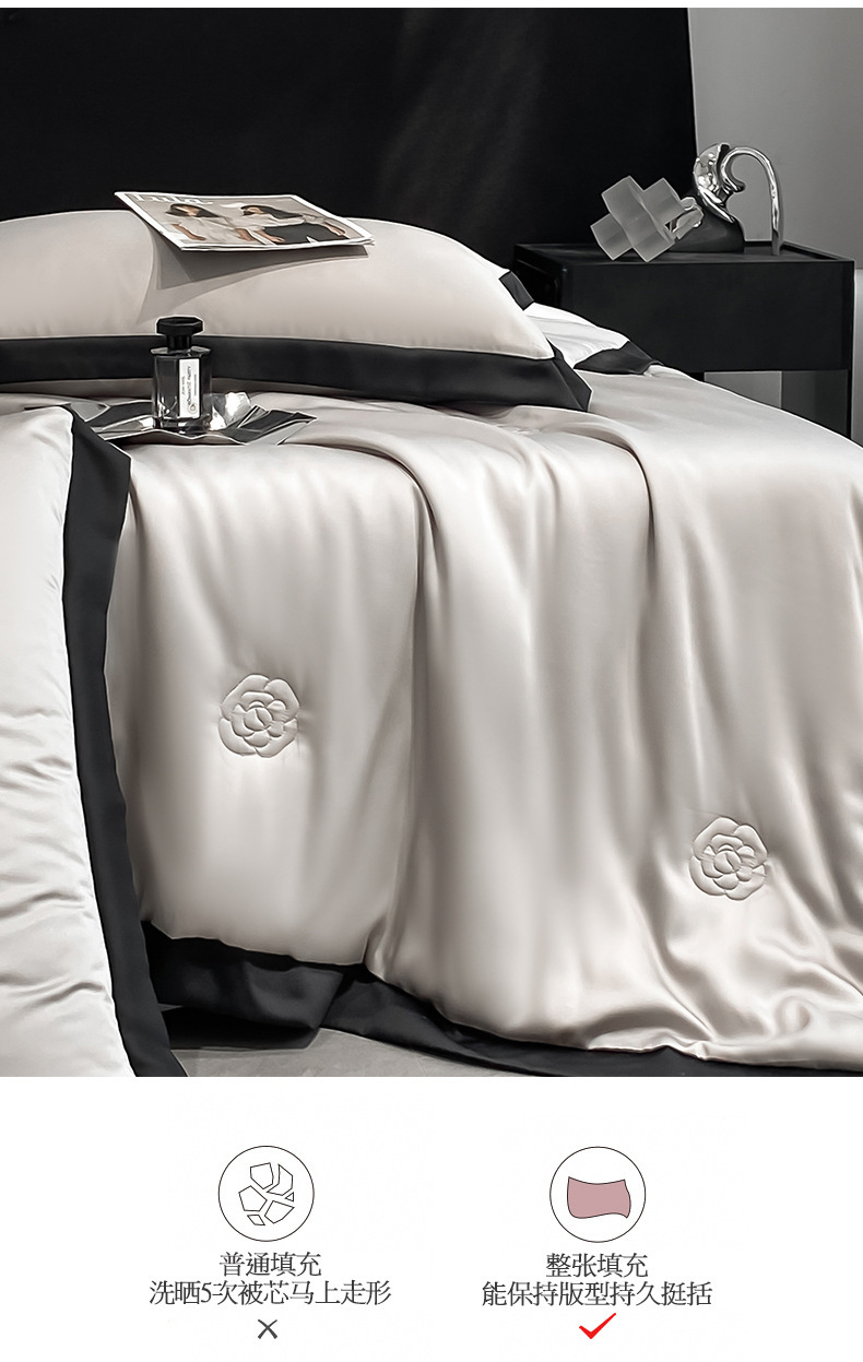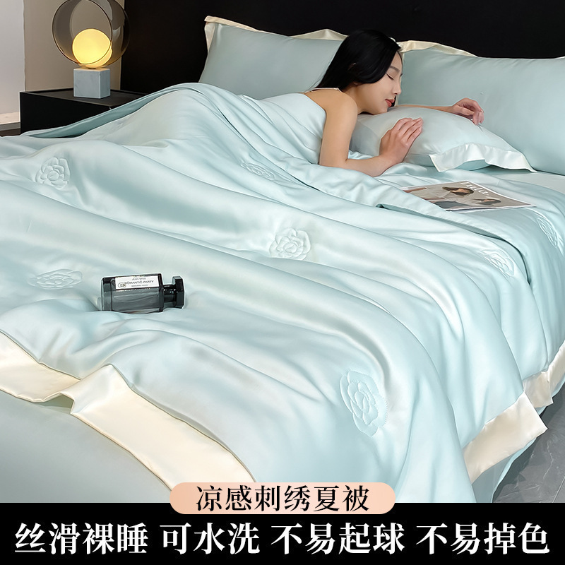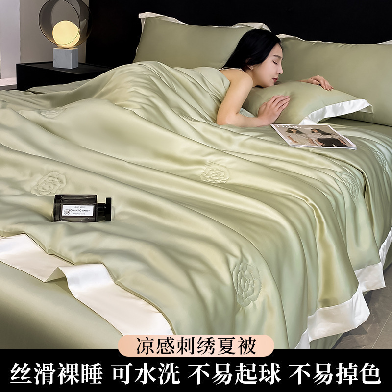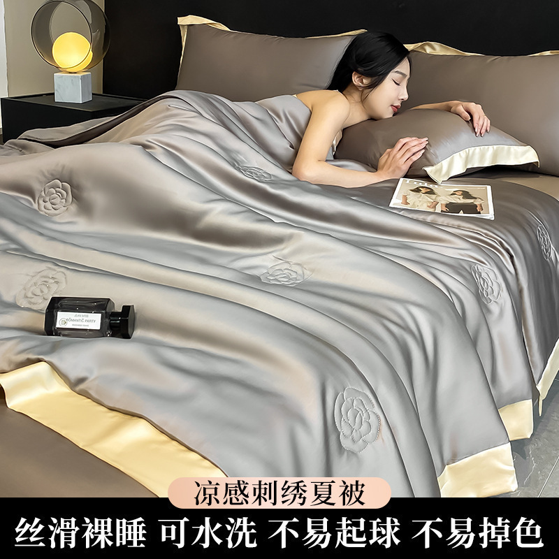 [동행자에게 인기] A급 워시드 아이스 실크 여름 이불 4피스 여름 시원한 이불은 벌거벗고 자는 데 적합합니다. 에어컨 이불은 시원한 느낌의 실크 여름 얇은 이불입니다.