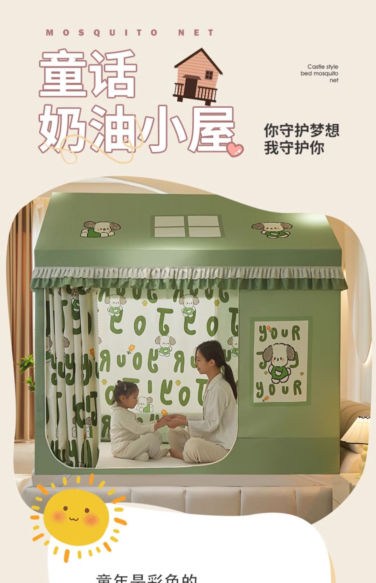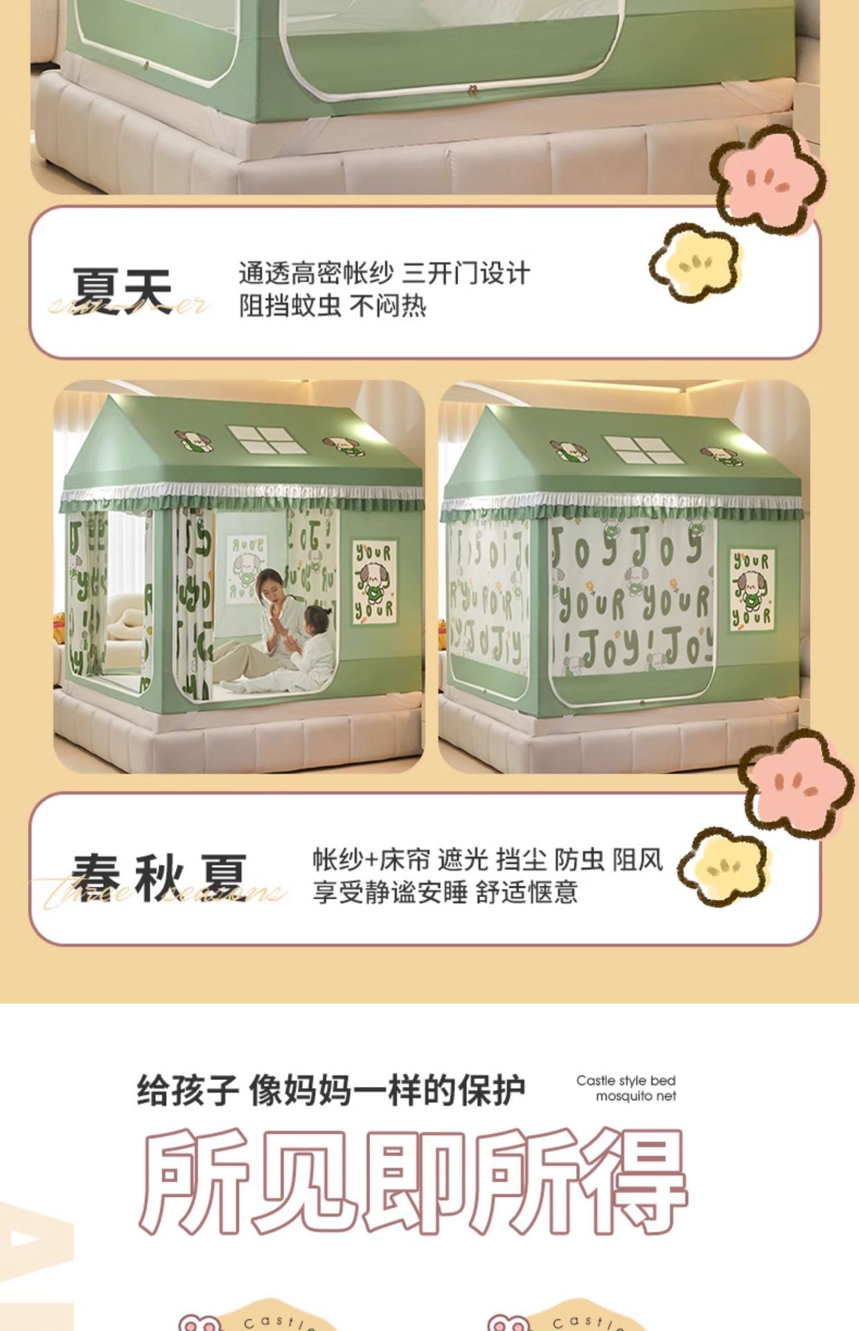2025년 가정용 침실용 새로운 낙하 방지 모기장, 설치가 필요 없는 몽골리안 돔 차광 침대 커튼, 어린이 낙하 방지 침대 일체형스토어 가기