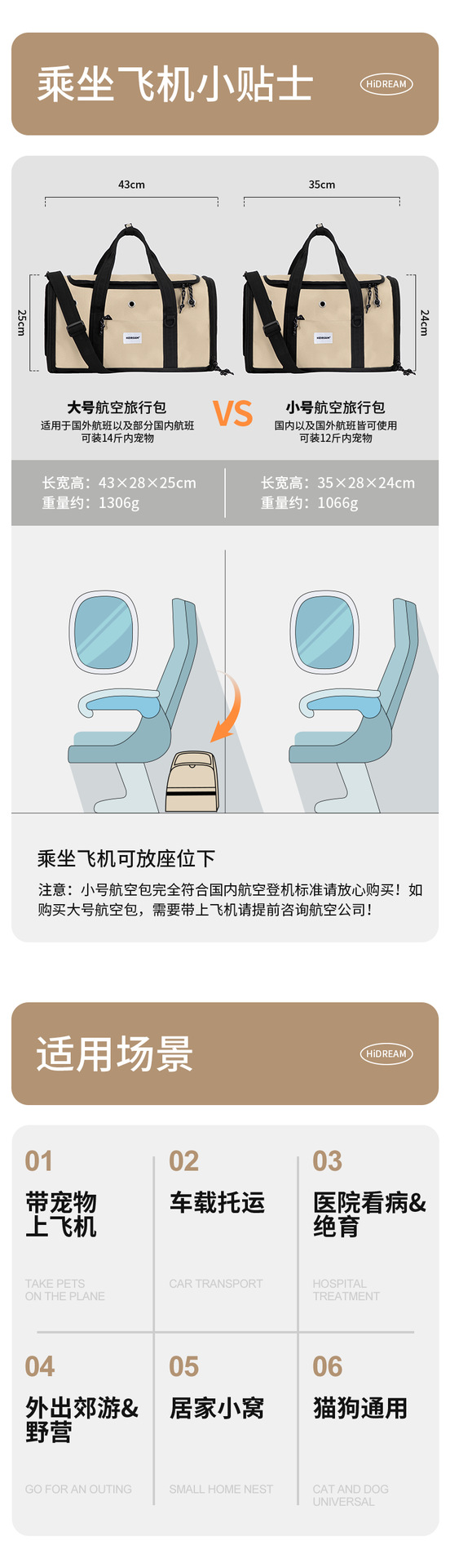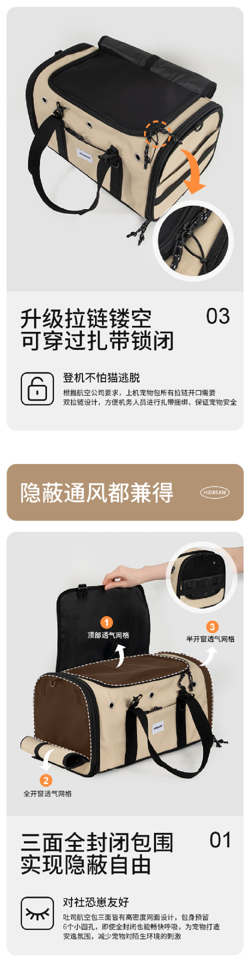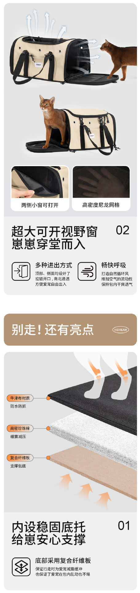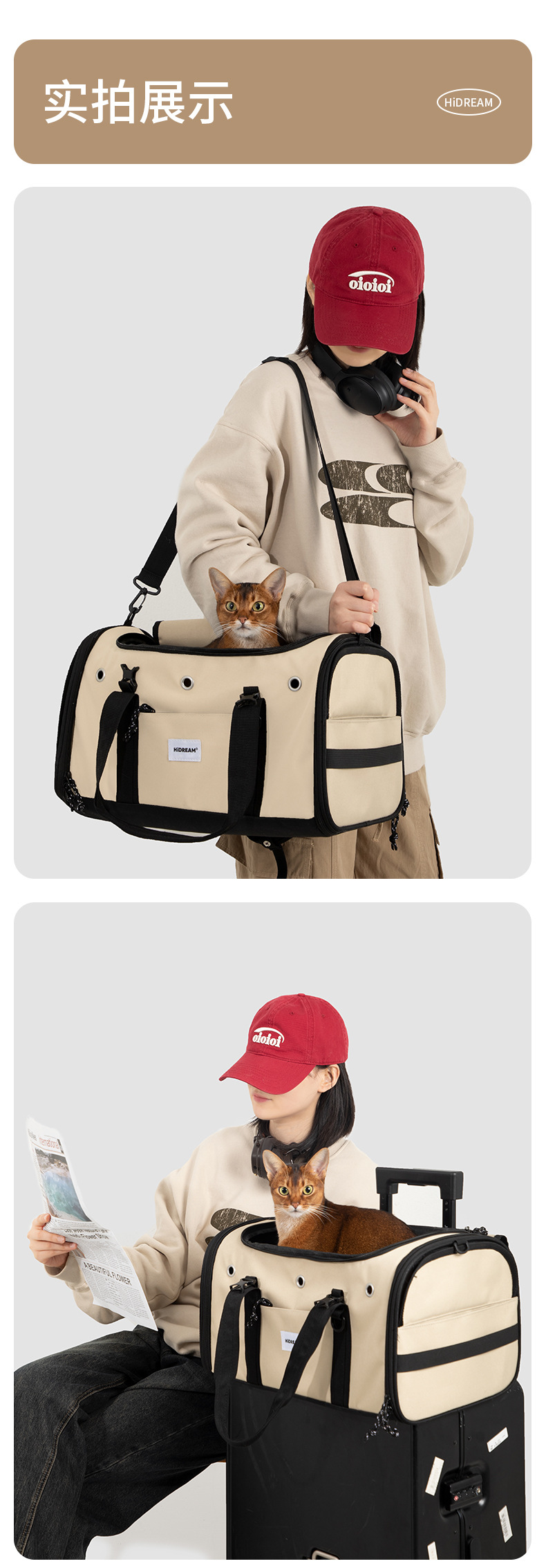 HiDREAM 고양이 가방, 외출시 휴대 가능, 어깨에 메고 다닐 수 있는, 사계절 사용 가능한 경량 대용량 항공 애완동물 가방