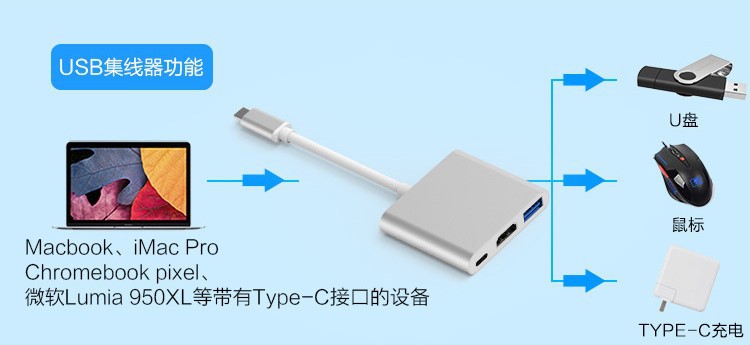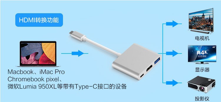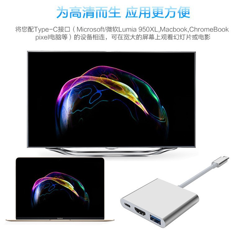 1 x Type C 3.1 to USB3.0/ HDMI/ Type C Female Charger Hub Adapter