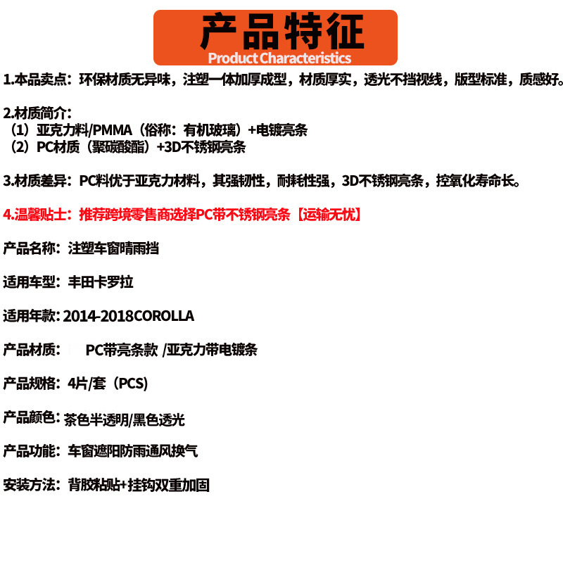Toyota Corolla 비 또는 빛 방지 2014-18toyotacorollaWindow 바이저 레인 바이저에 적합스토어 가기