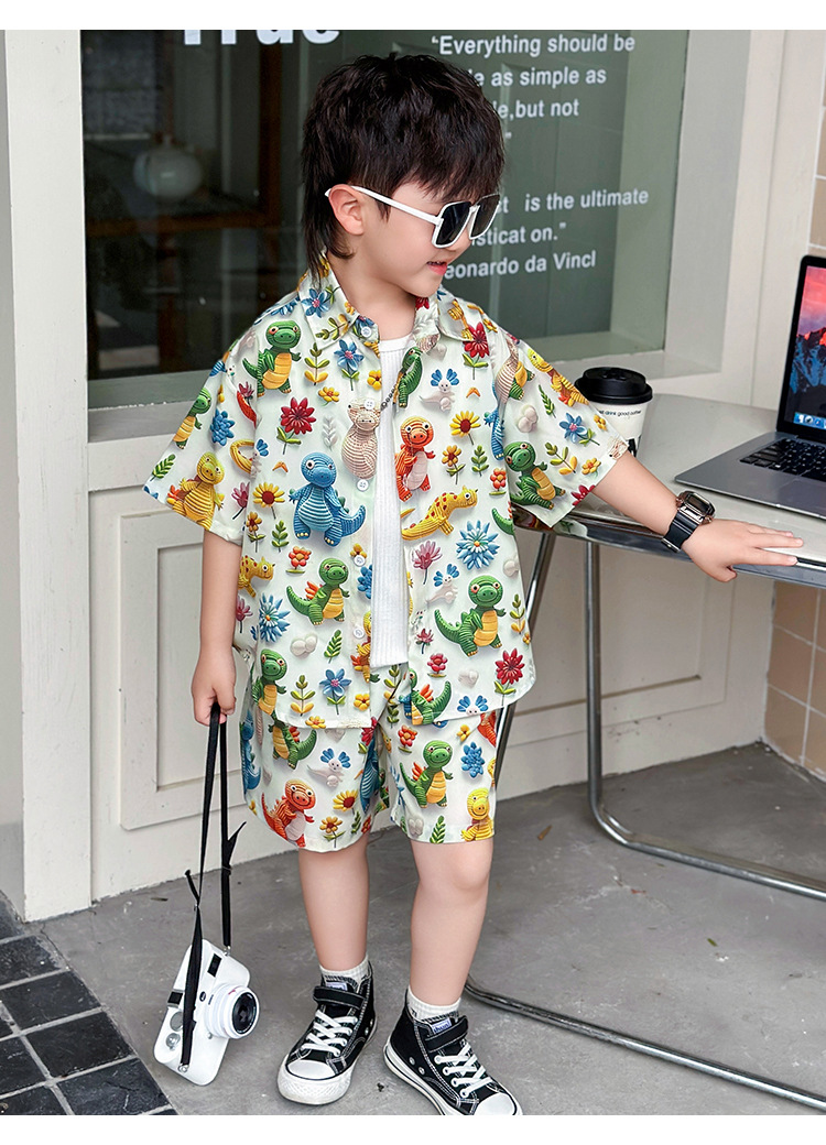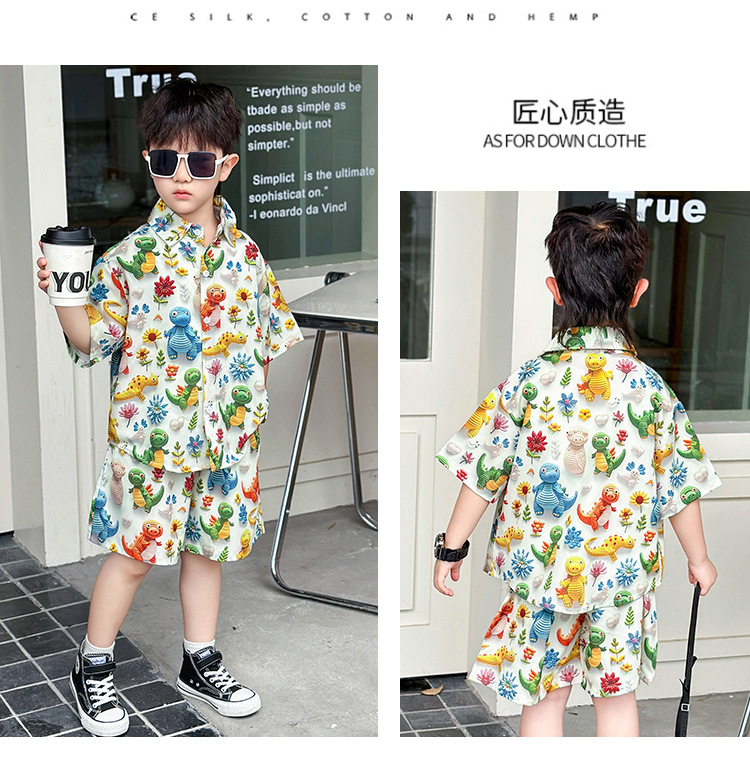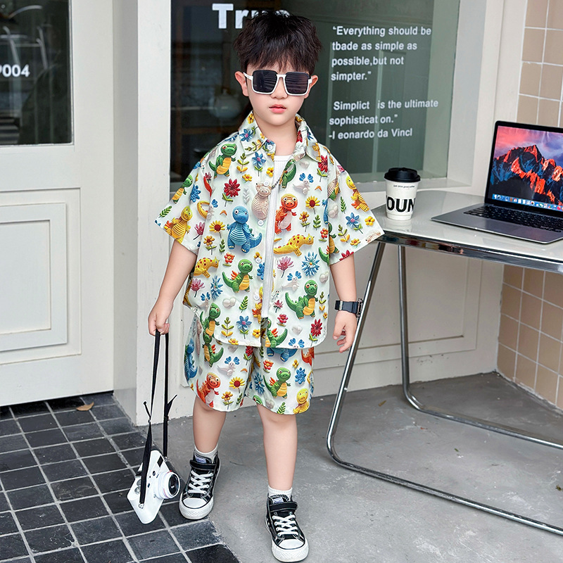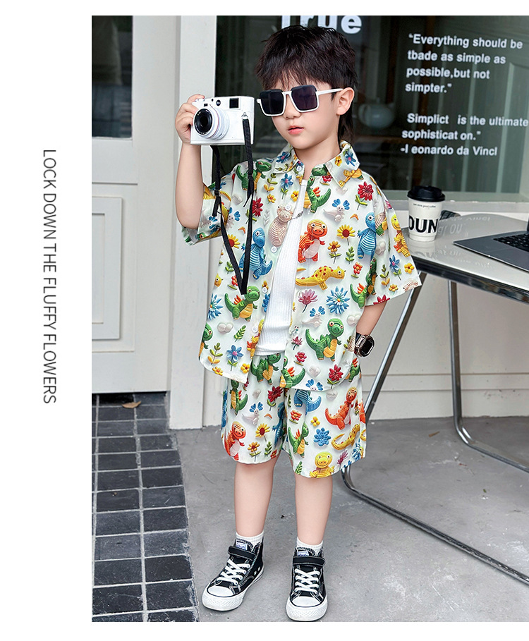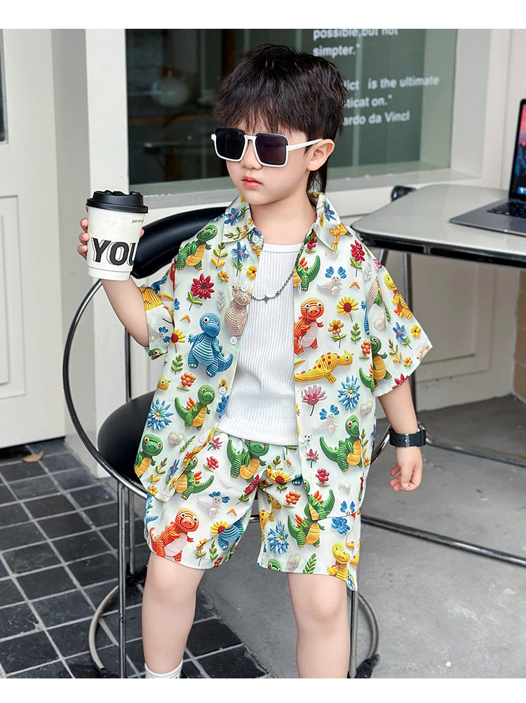 소년 여름 해변 의류 꽃무늬 셔츠 캐주얼 투피스 슈트 제조업체 직영 매장 도매 소스 공장