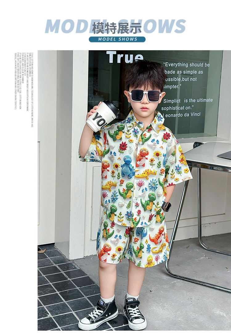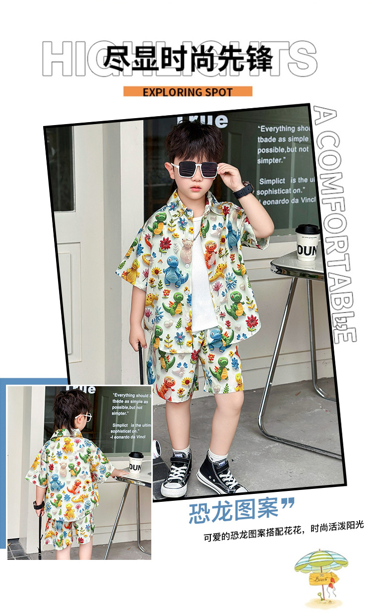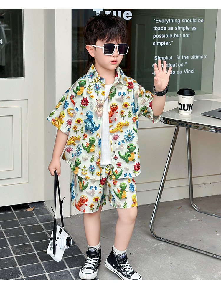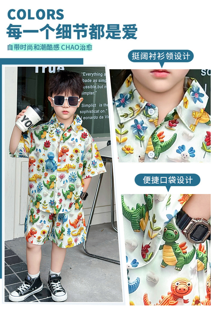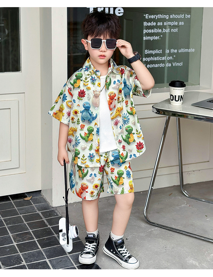 소년 여름 해변 의류 꽃무늬 셔츠 캐주얼 투피스 슈트 제조업체 직영 매장 도매 소스 공장