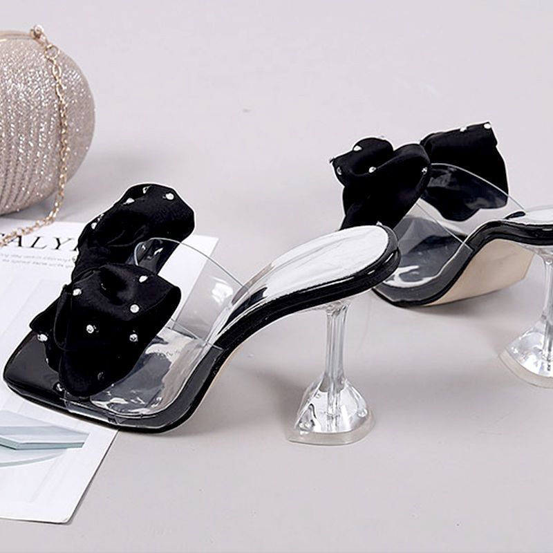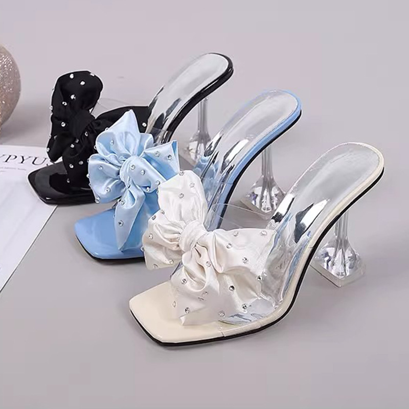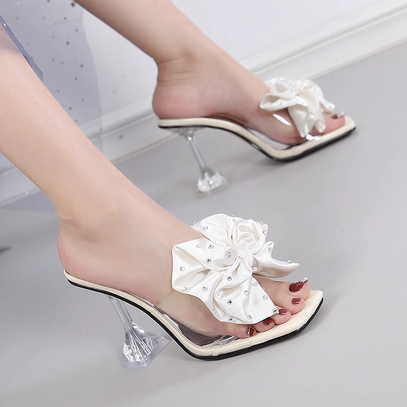 크리스털 하이힐 여자 2025 년 새 패션 스틸레토 힐 올 매치 여름 오픈 발가락 요정 샌들과 슬리퍼 외신 큰 꽃스토어 가기