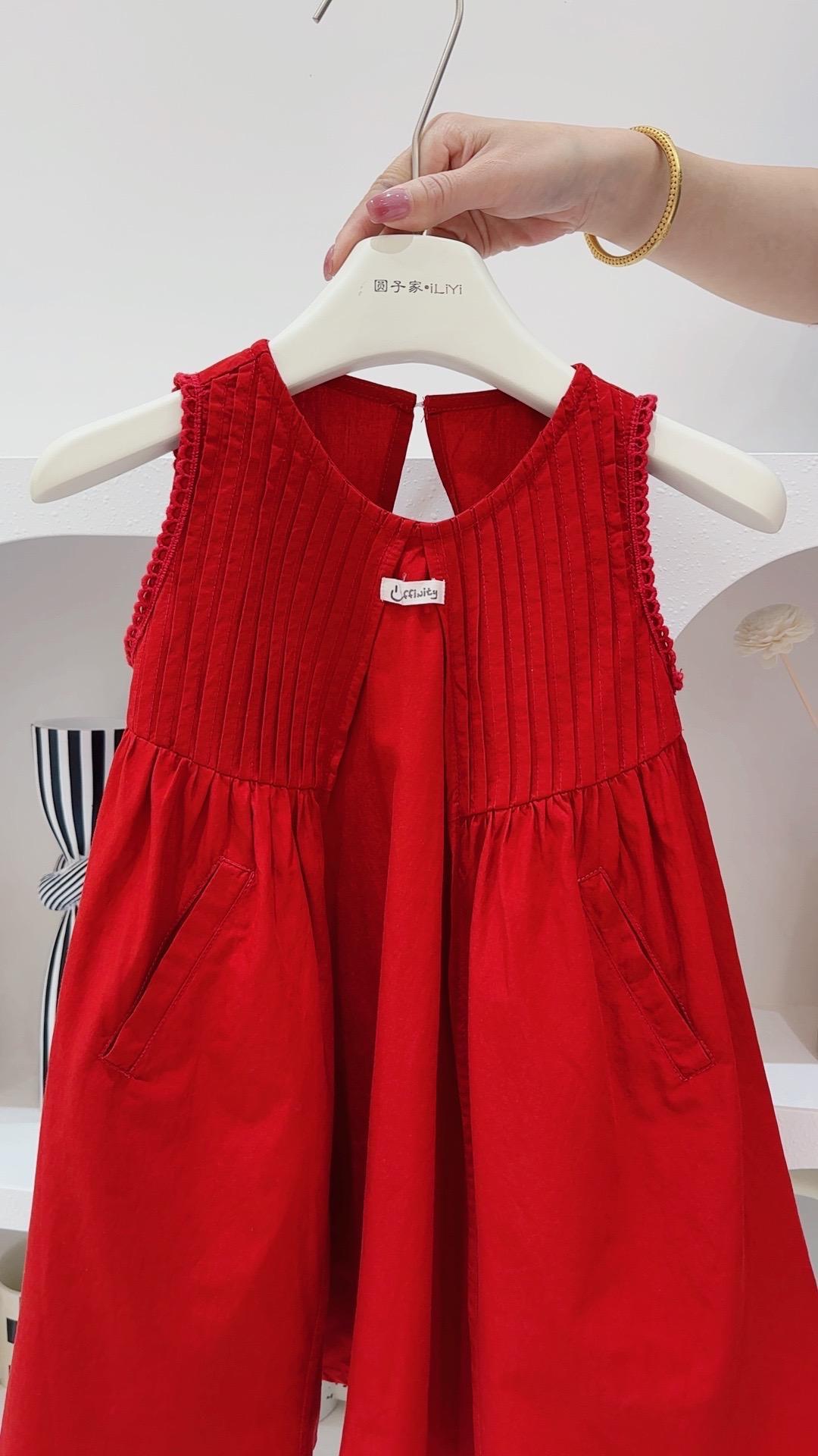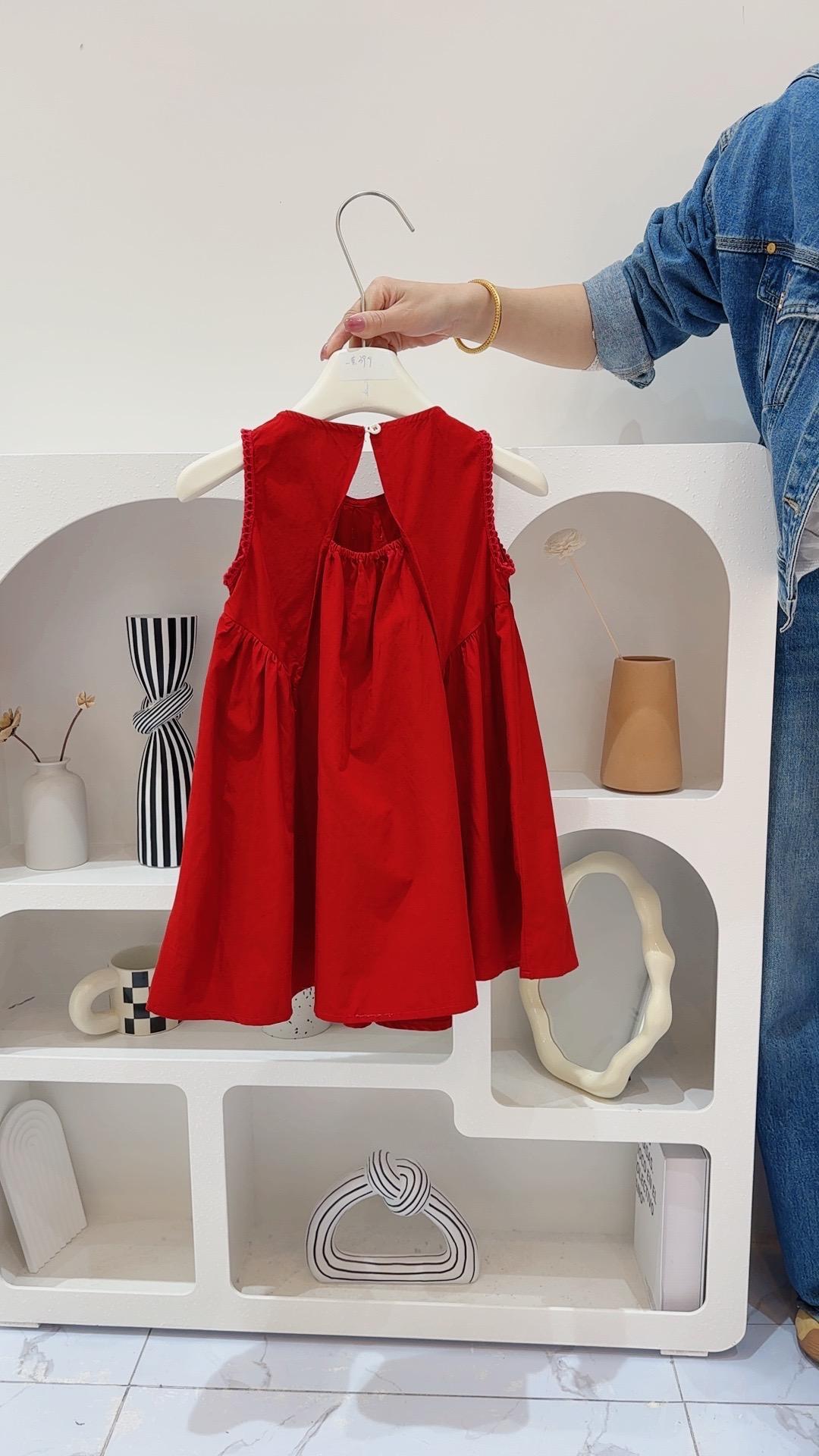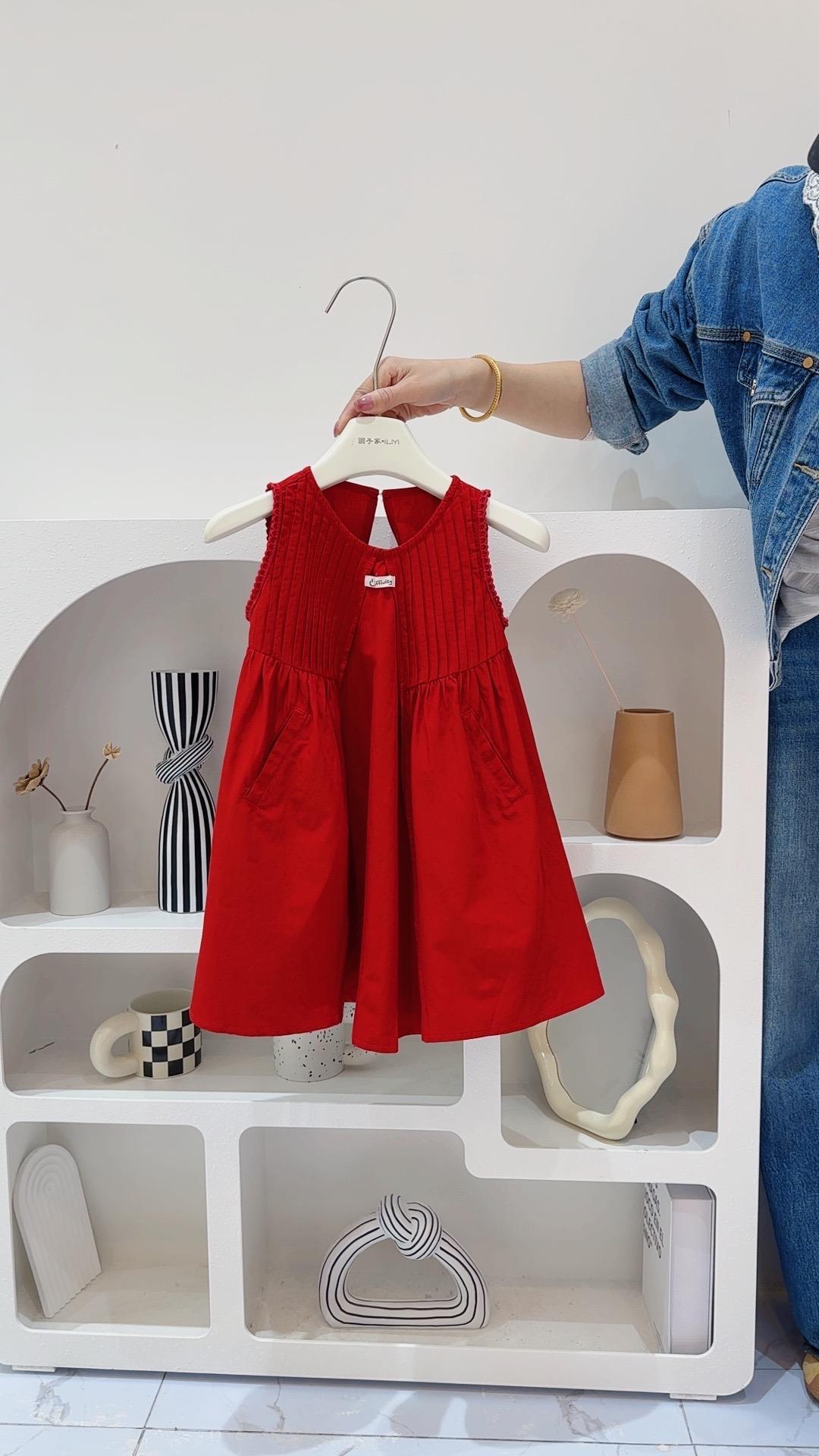 여자 드레스 여름 민소매 조끼 스커트 2025 한국 스타일 아기 소녀 유행 빨간 공주 스커트스토어 가기