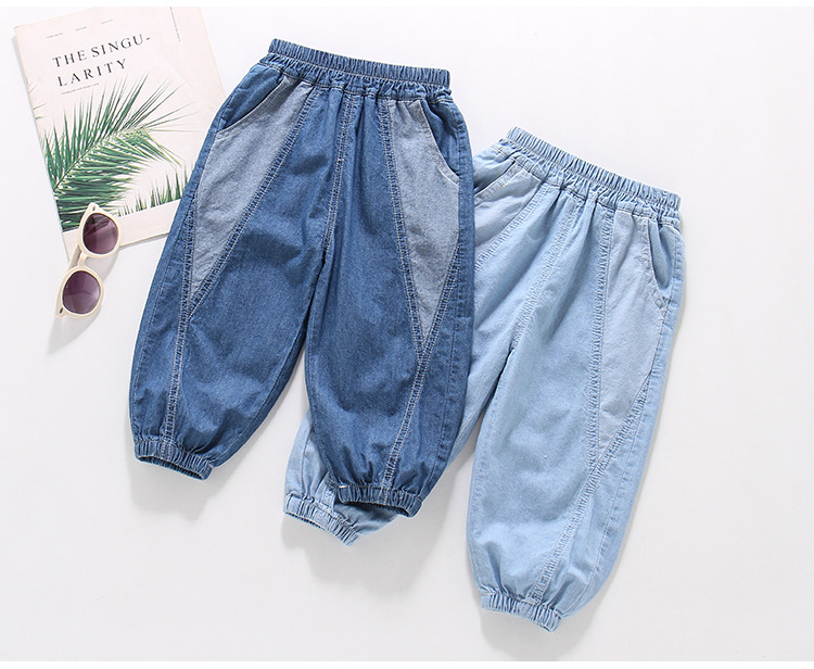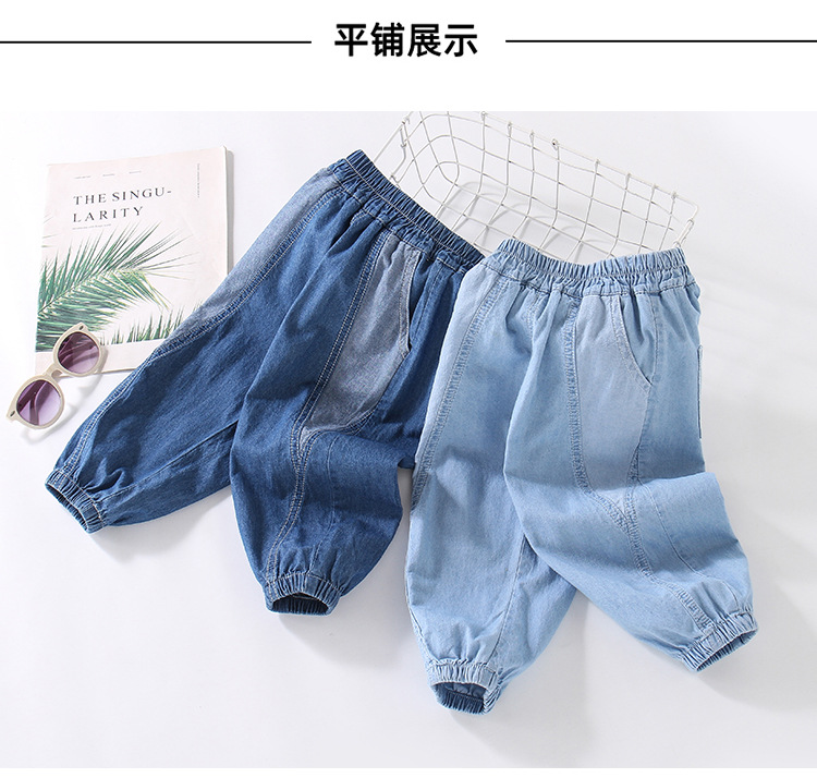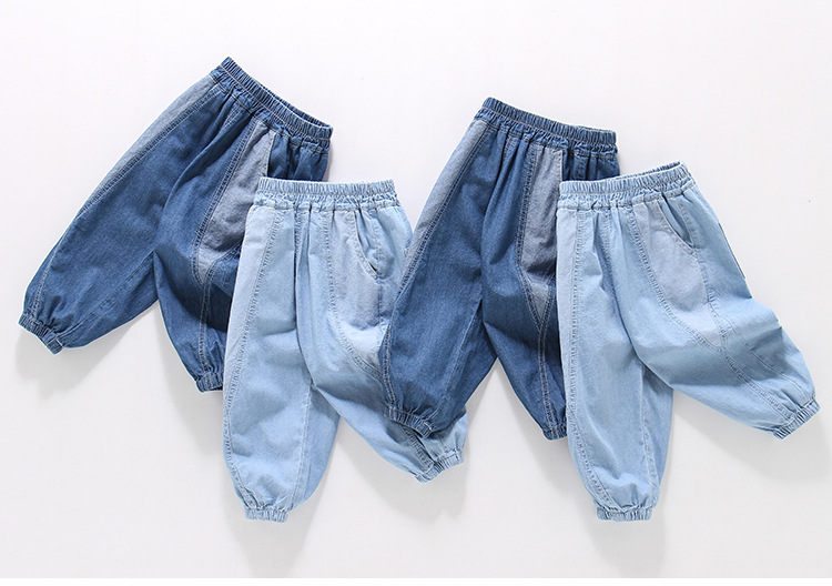 여름 소년의 얇은 데님 모기 방지 바지 면 어린이 발목 바지 슈퍼 소프트 라이트 코튼 바느질 긴 바지스토어 가기