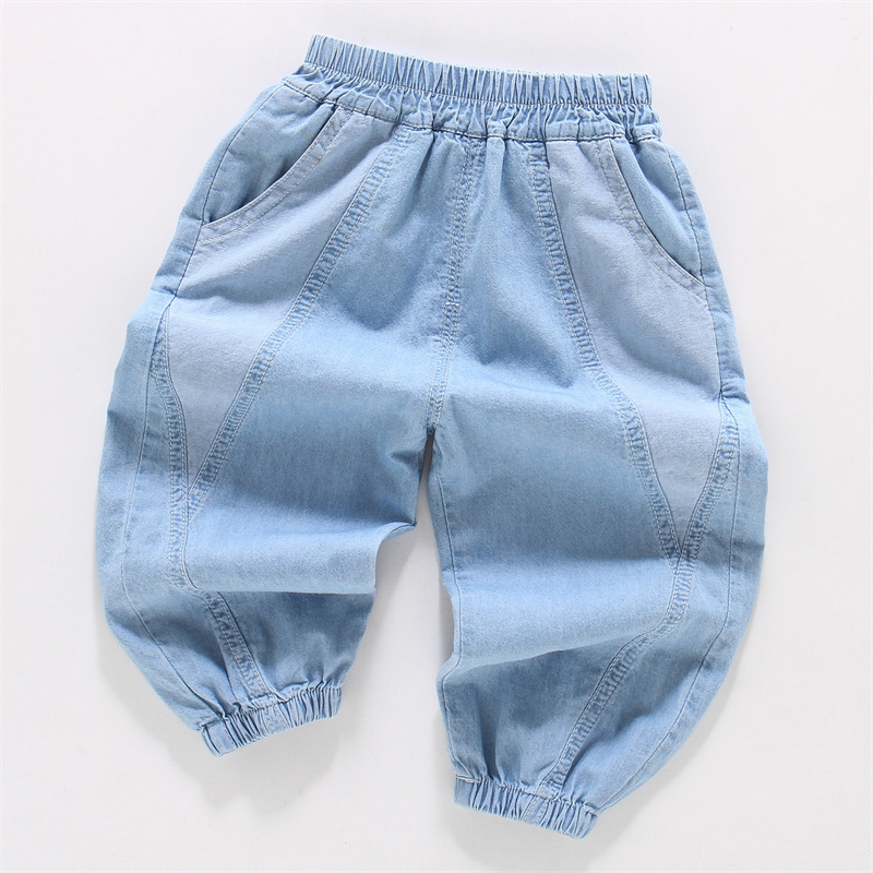 여름 소년의 얇은 데님 모기 방지 바지 면 어린이 발목 바지 슈퍼 소프트 라이트 코튼 바느질 긴 바지