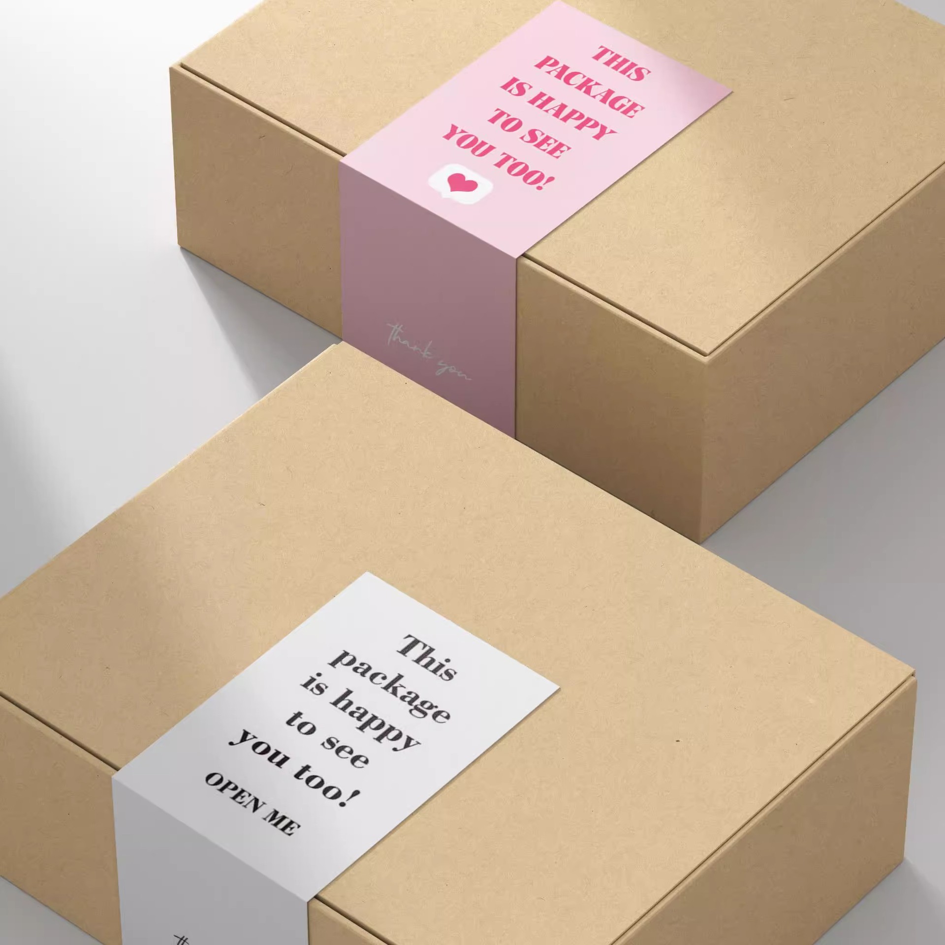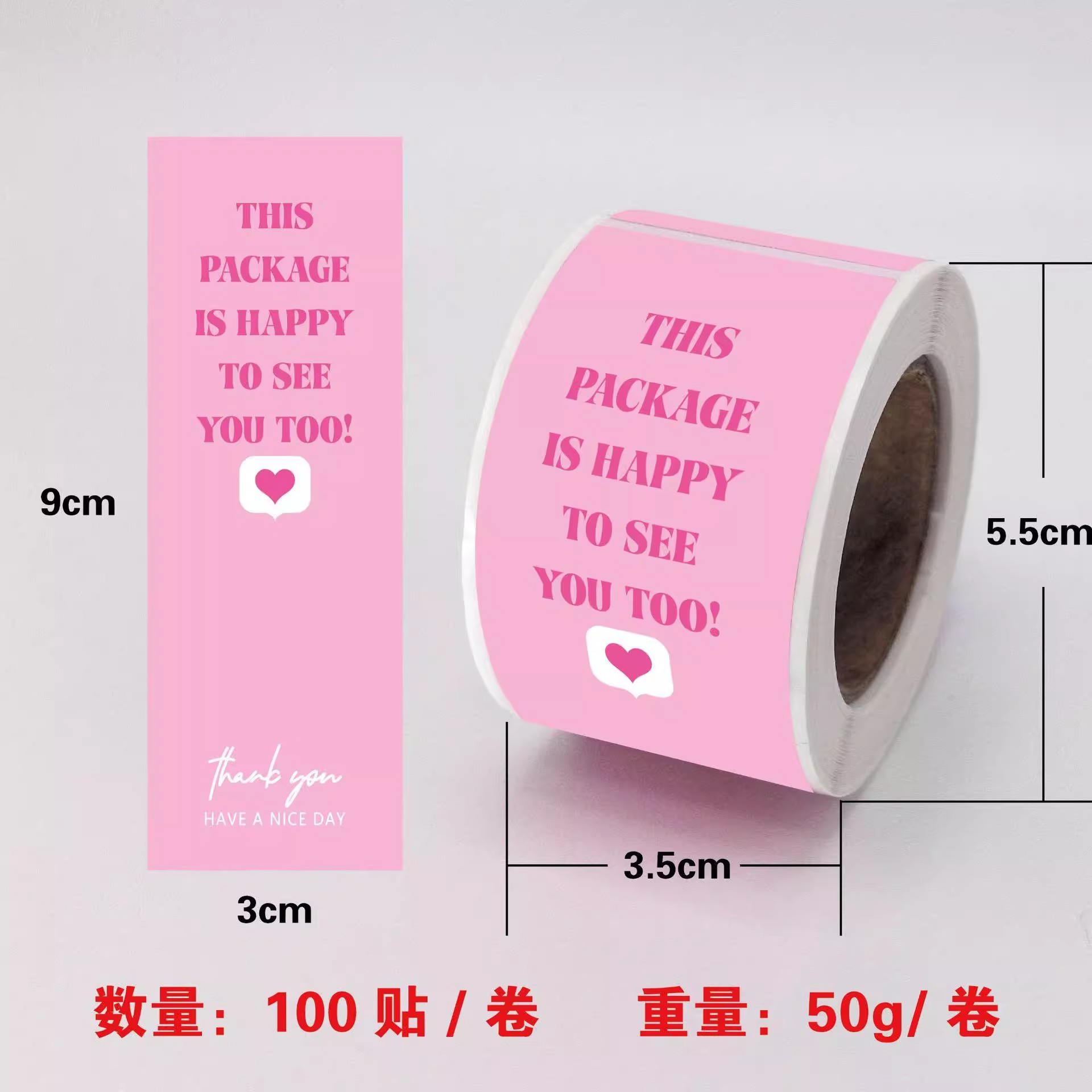 핑크 흰색 스트립 유형 비행 기계 상자 밀봉 스티커 직사각형 간단한 스티커 재고 도매 100 스티커