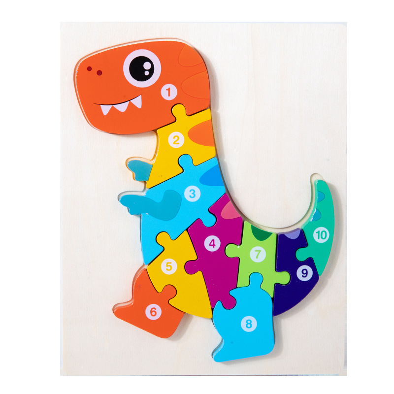CPC跨境木质3d立体拼图儿童早教益智恐龙拼图配对摆地摊玩具批发