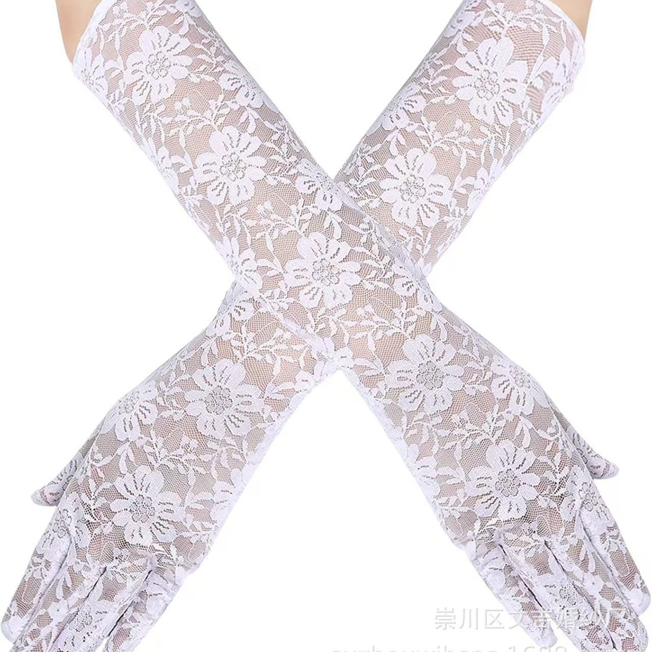 여성용 반 손가락 레이스 장갑, 긴 중공 검정색 섹시한 메쉬 이브닝 드레스 크로스 보더 파티 반 손가락 스타일