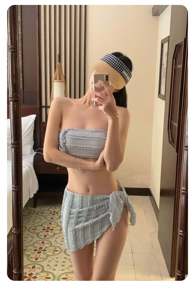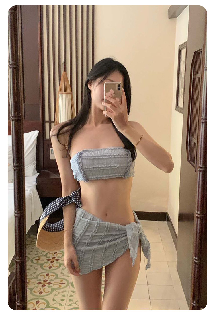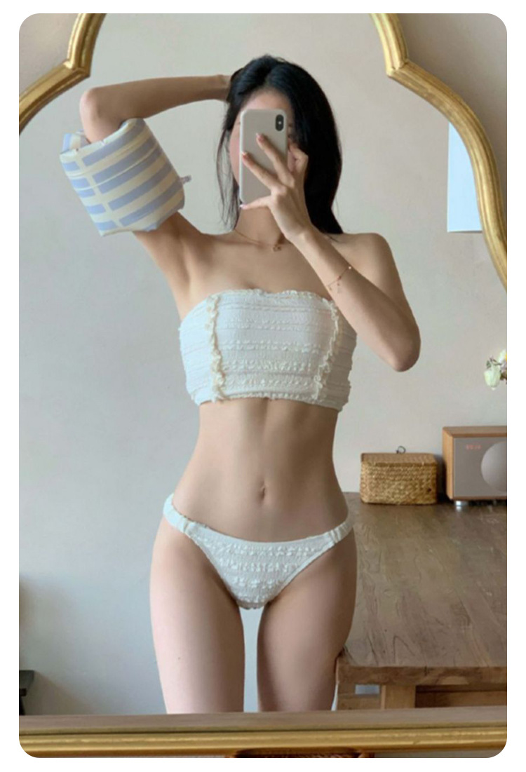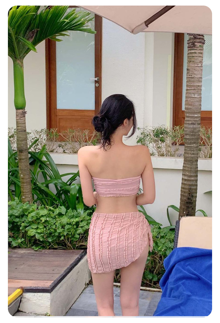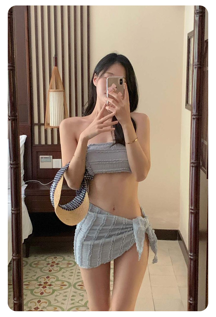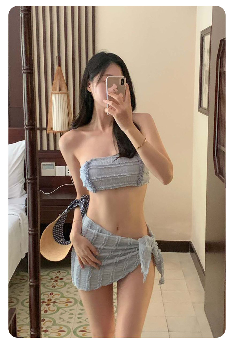 스트랩리스 어깨 섹시 스플릿 비키니 수영복 작은 가슴 휴가 인터넷 인기 3 피스 세트 엔티티 일본과 한국 소스스토어 가기