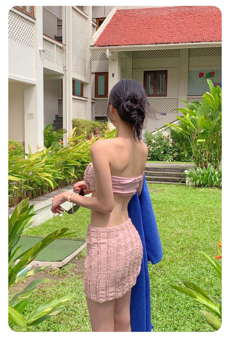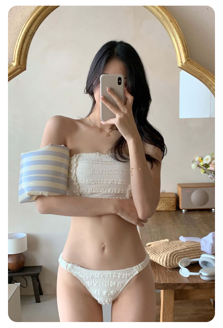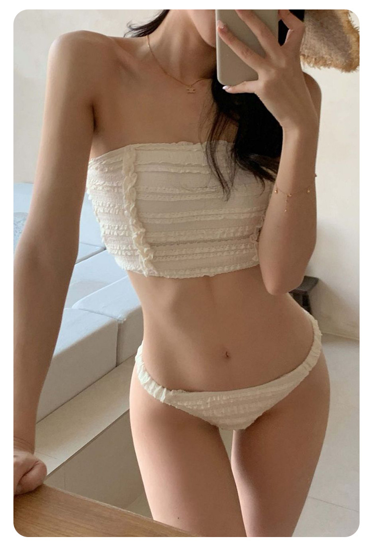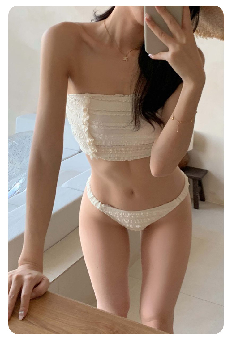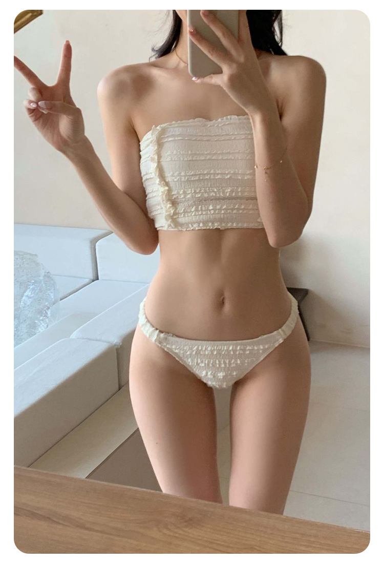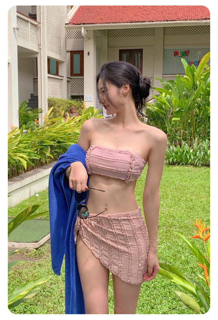 스트랩리스 어깨 섹시 스플릿 비키니 수영복 작은 가슴 휴가 인터넷 인기 3 피스 세트 엔티티 일본과 한국 소스스토어 가기
