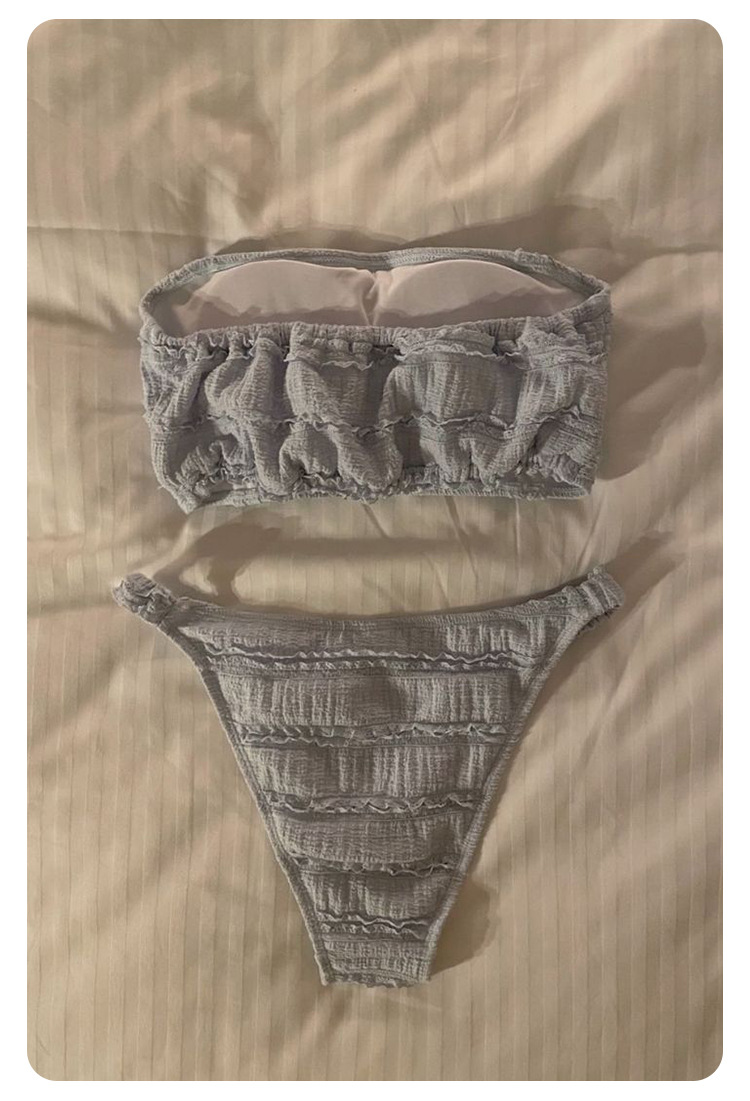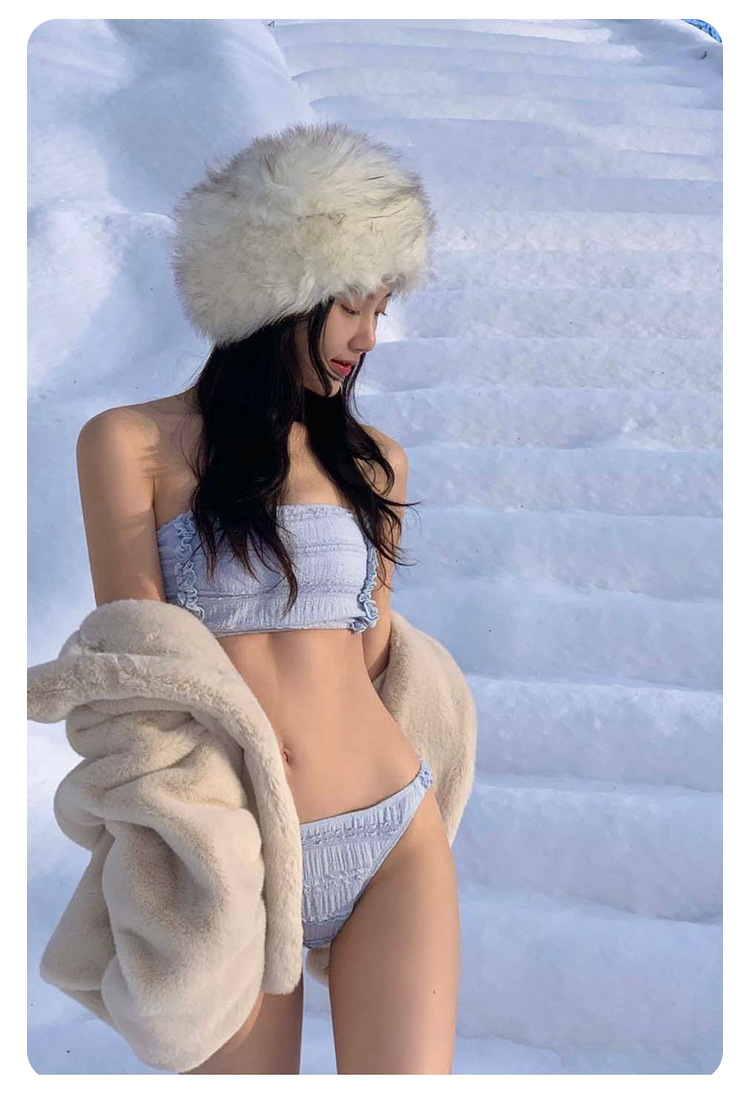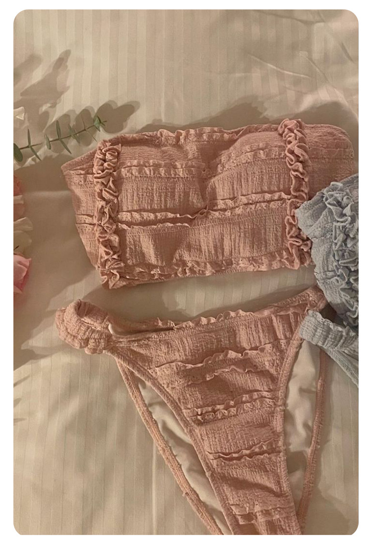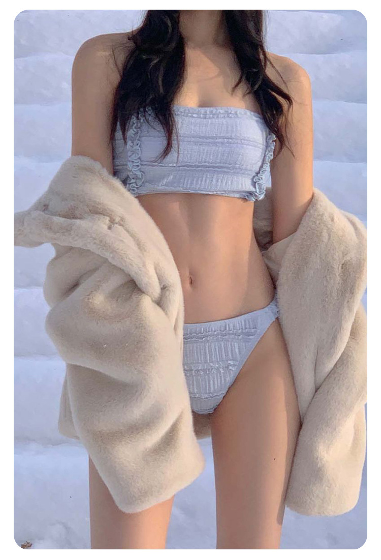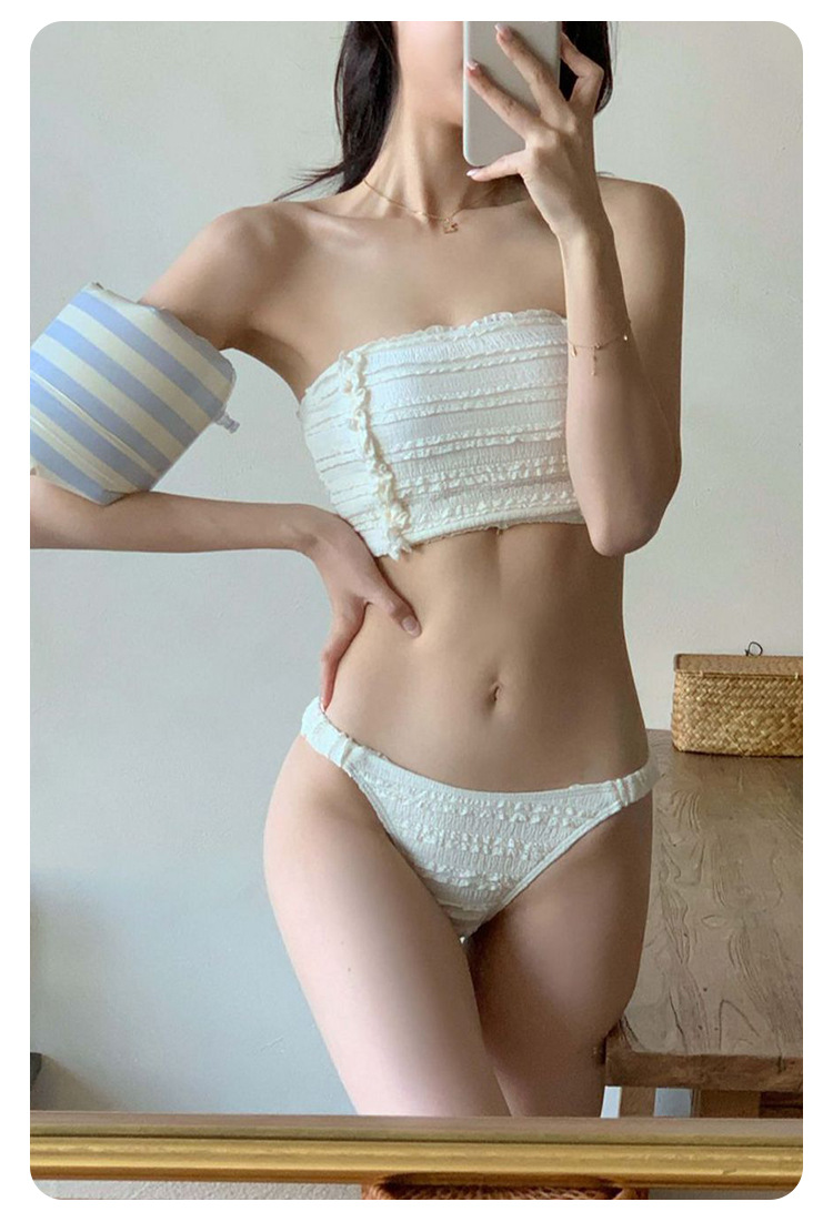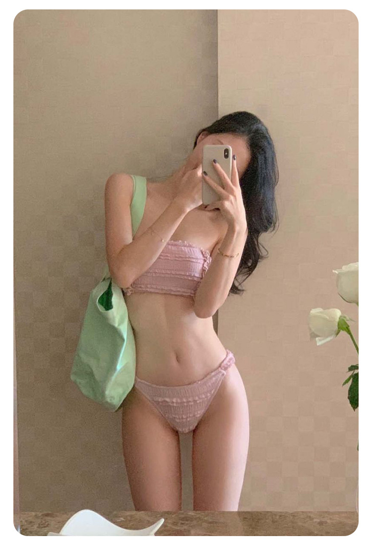 스트랩리스 어깨 섹시 스플릿 비키니 수영복 작은 가슴 휴가 인터넷 인기 3 피스 세트 엔티티 일본과 한국 소스스토어 가기