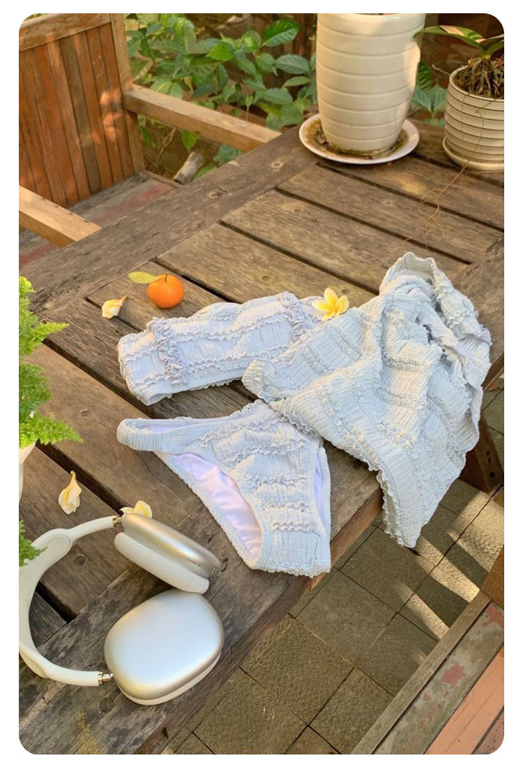 스트랩리스 어깨 섹시 스플릿 비키니 수영복 작은 가슴 휴가 인터넷 인기 3 피스 세트 엔티티 일본과 한국 소스