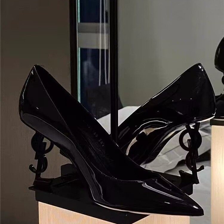 유럽과 미국의 하이힐 여성 2025 새로운 봄, 가을 패션 파티 특허 가죽 빛 입 뾰족한 발가락 섹시한 신발스토어 가기
