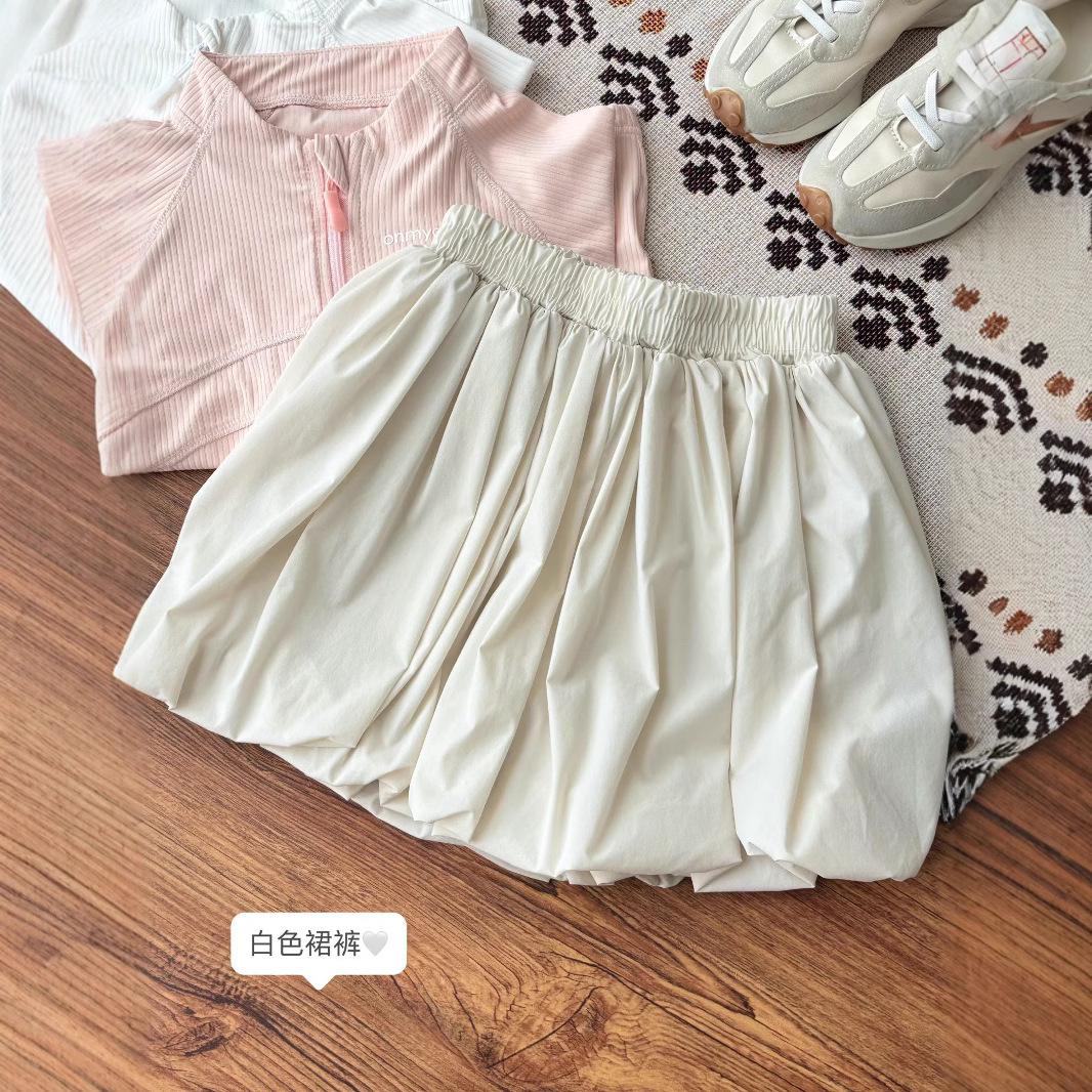봄과 여름 아동복 소녀 푹신한 꽃 봉오리 바지 스커트 어린이 빠른 건조 캐주얼 2 색 스윙 스커트 대형 어린이 랜턴 스커트