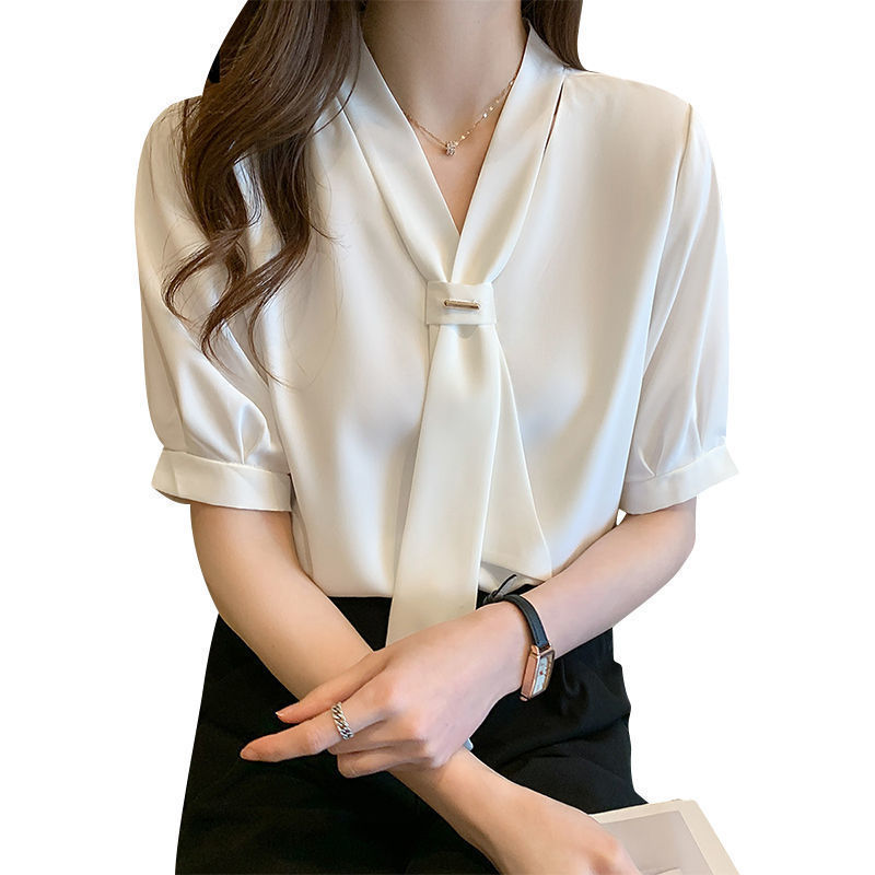 여름 여성 쉬폰 셔츠 통근 여성 여름 의류 2025 새로운 패션 짧은 소매 탑 전문 화이트 셔츠