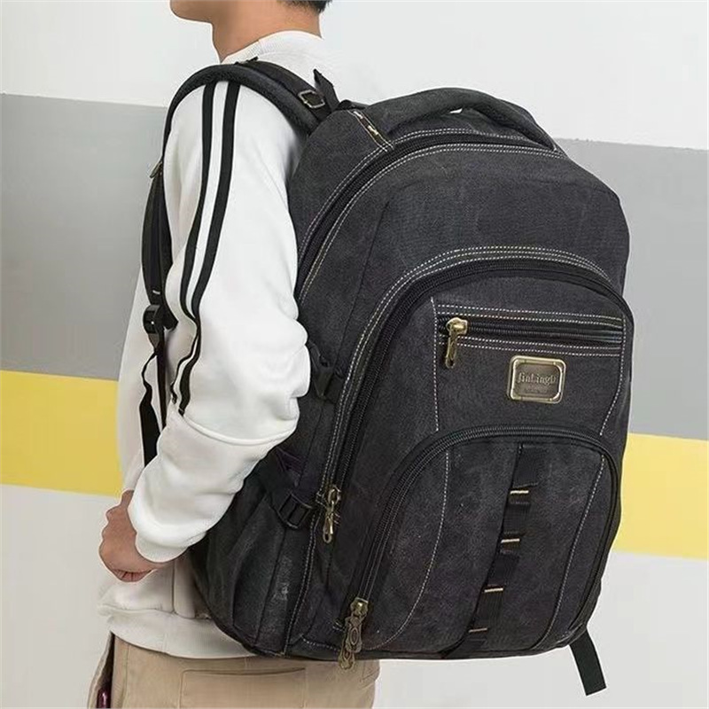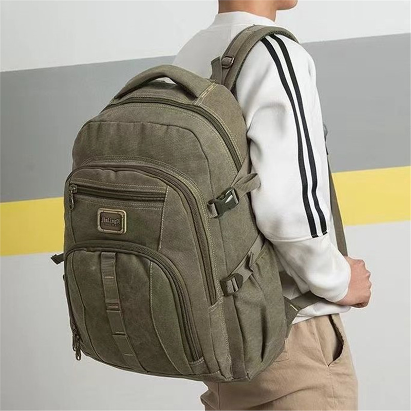 두꺼운 캔버스 배낭 남성용 야외 배낭 튼튼하고 내마모성이 뛰어난 중학생 학교 가방 하이킹 및 등산 가방스토어 가기