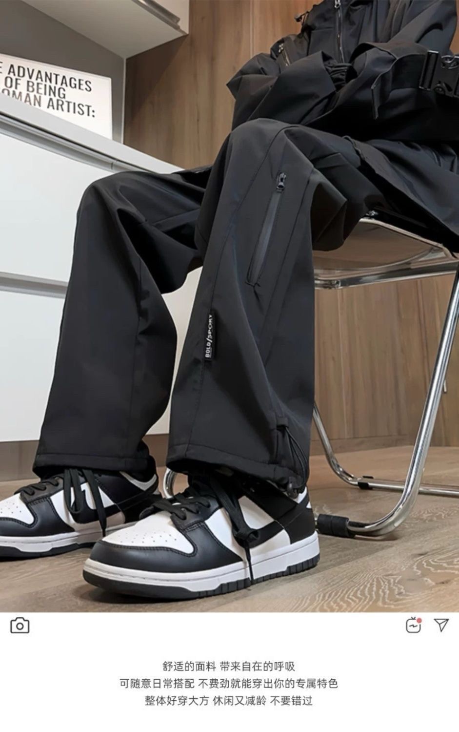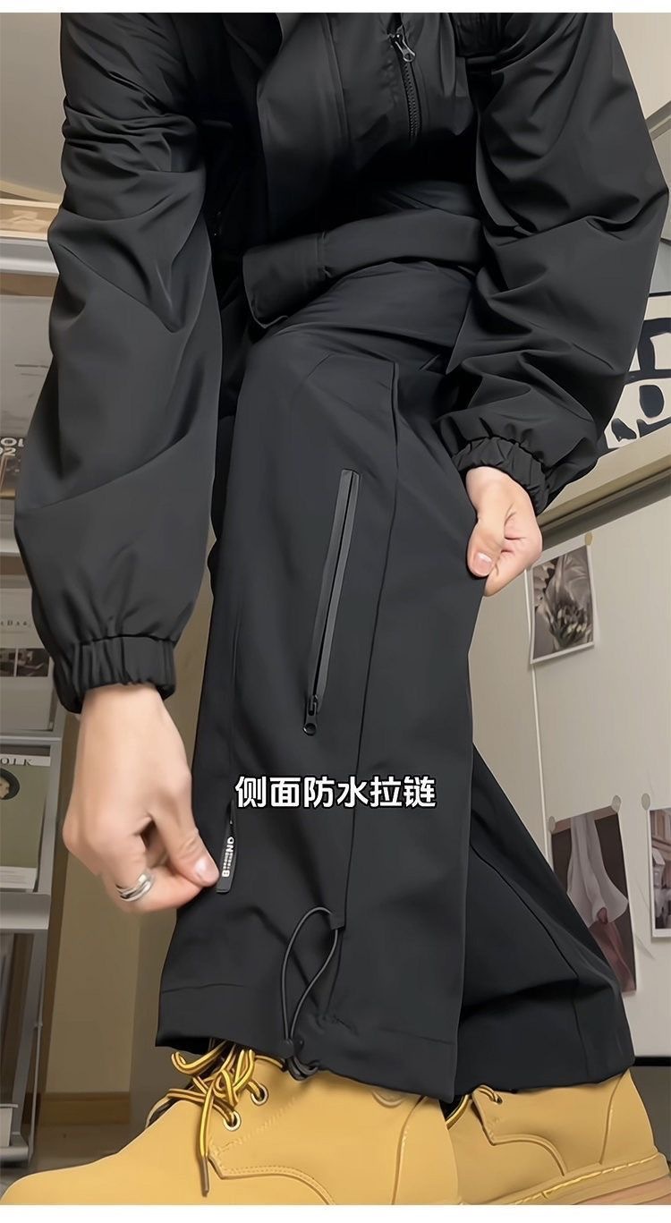 검은 충전 바지 소년 봄과 여름 2025 새로운 야외 방수 스트레이트 팬츠 유행 브랜드 느슨한 캐주얼 작업복스토어 가기