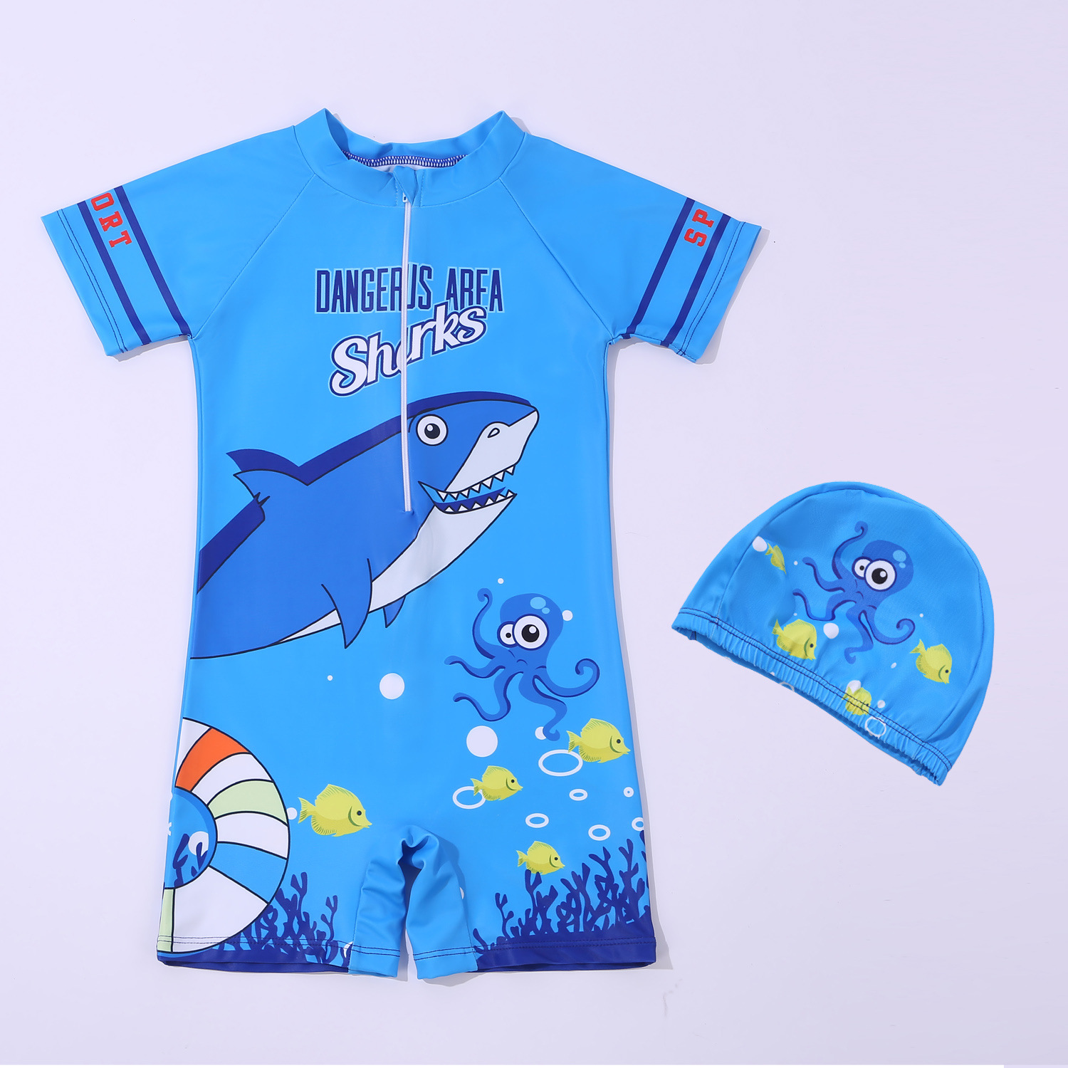 어린이 수영복 소년 모자를 가진 만화 소년 3-12 세 수영복 소년 아기 빠른 드라이 온천 수영복 도매