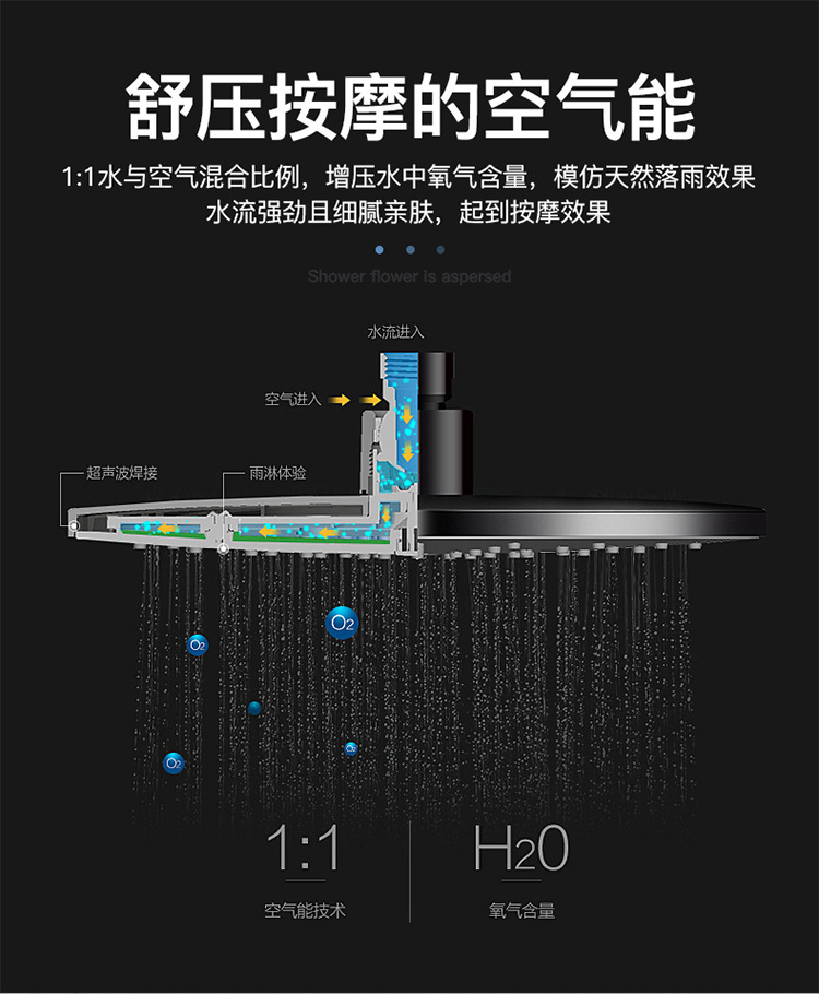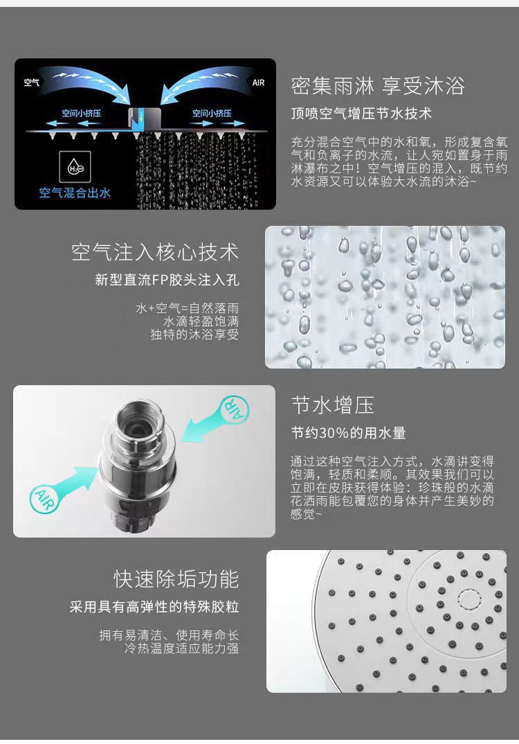 • 전기 도금* 상어 3단 업그레이드 두꺼운 사각형 스테인레스 스틸 탑 스프레이