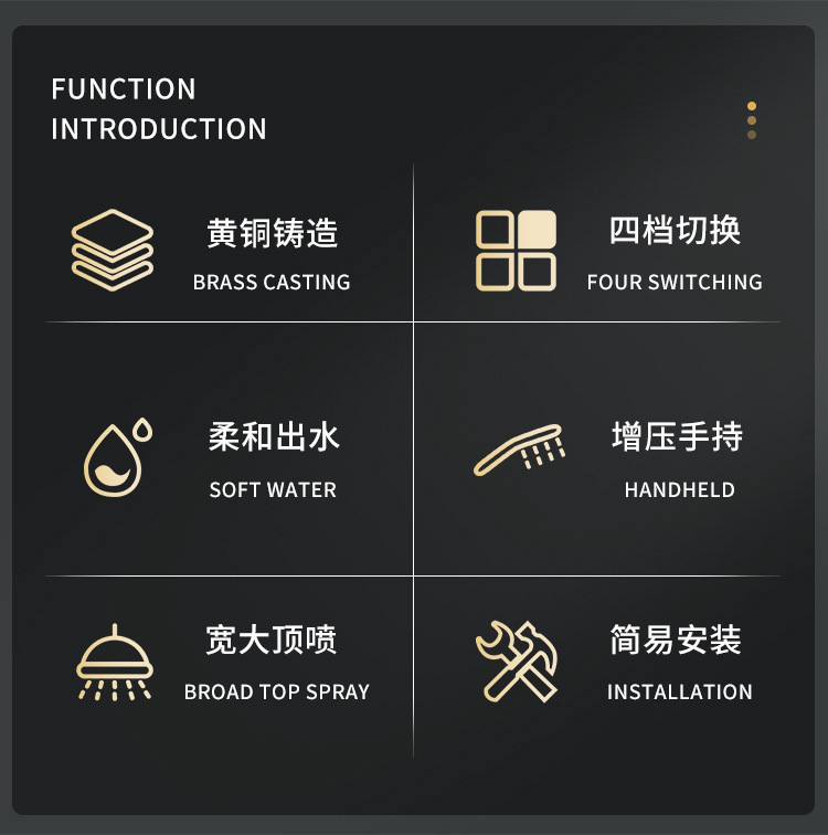 • 전기 도금 버튼 4단 업그레이드 두꺼운 사각형 스테인레스 스틸 탑 스프레이