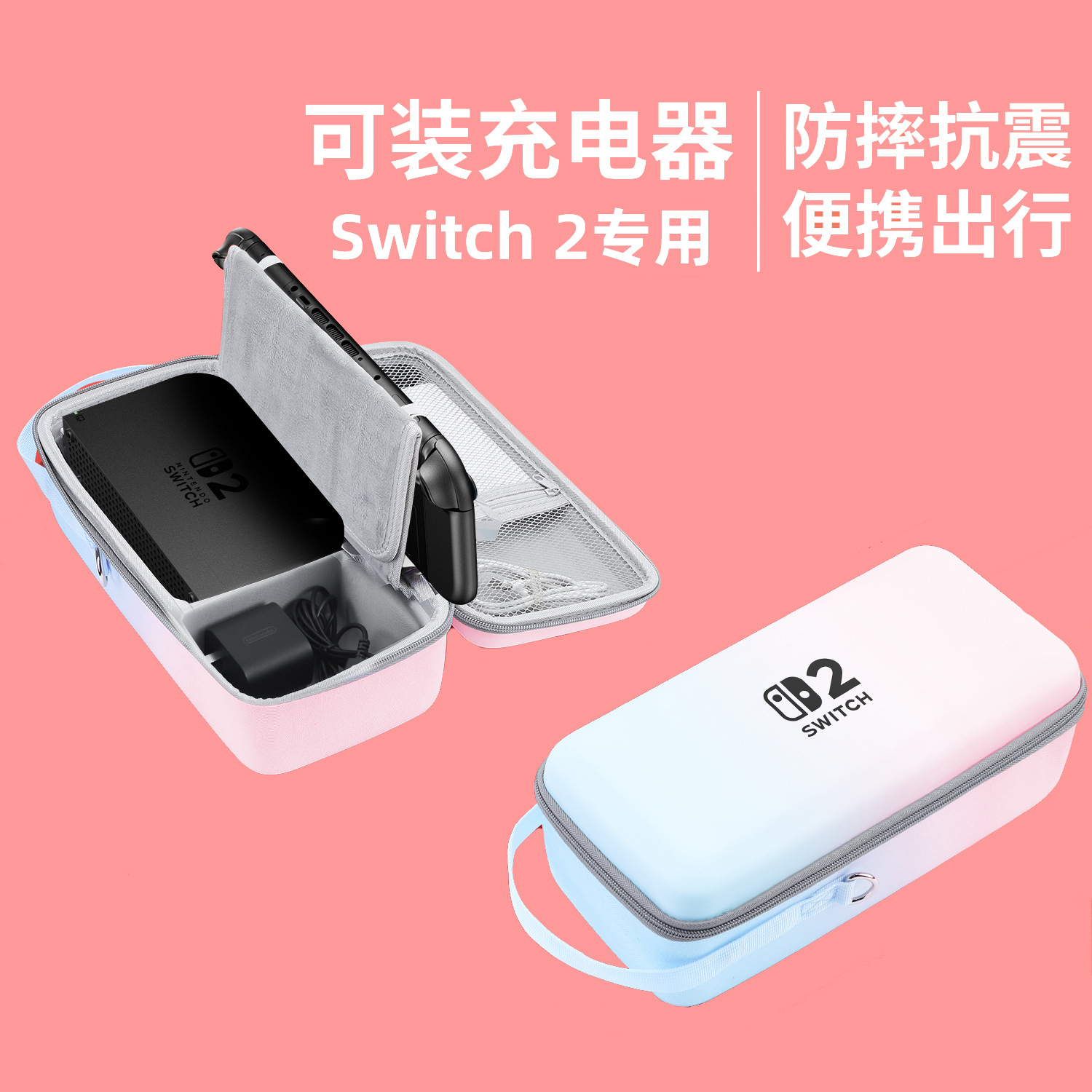 • 스위치 2세대 수납가방 [블루핑크 그라데이션★내장형 브라켓】