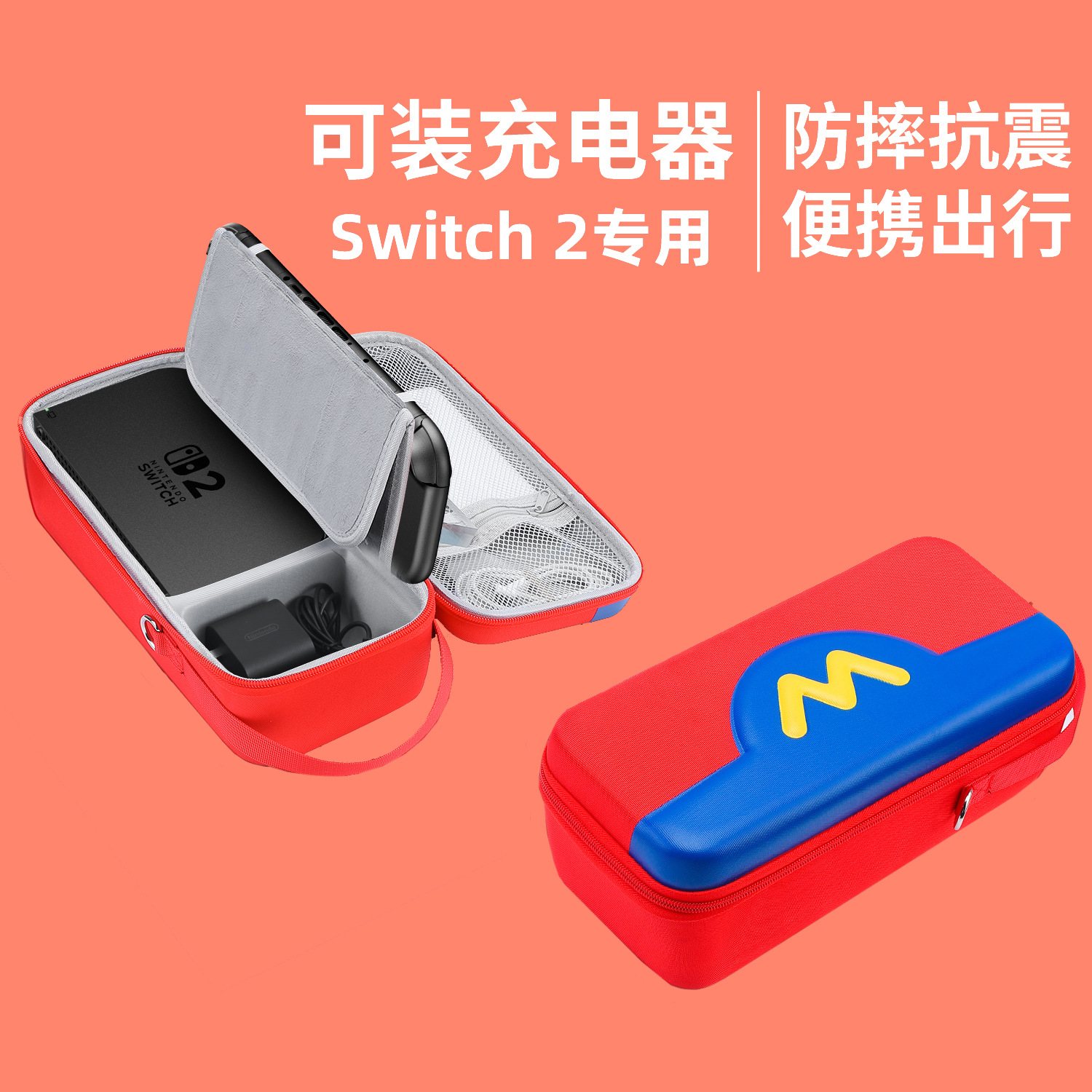 • 스위치 2세대 수납가방 [마리오M 로고]★내장형 브라켓】