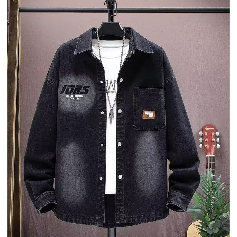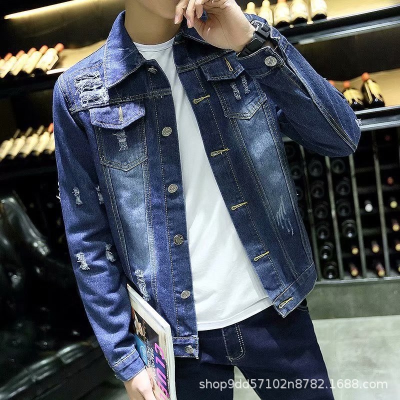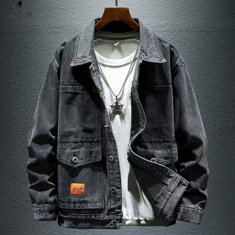 기타 체인 데님 코트 남성 새 봄과 가을 캐주얼 잘 생긴 작업 재킷 남성 패션 의류 도매스토어 가기