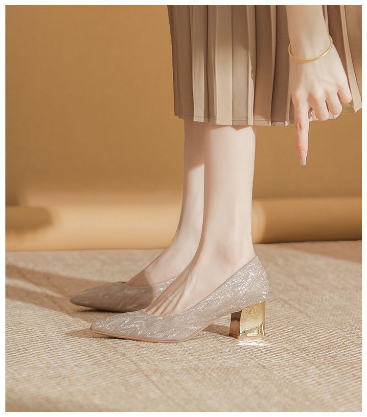 불링불링 샴페인 컬러 약혼 결혼식 신발 신부 신발 크리스탈 신발 신부 들러리 신발 발이 피곤하지 않은 뾰족한 발가락 두꺼운 굽 하이힐스토어 가기