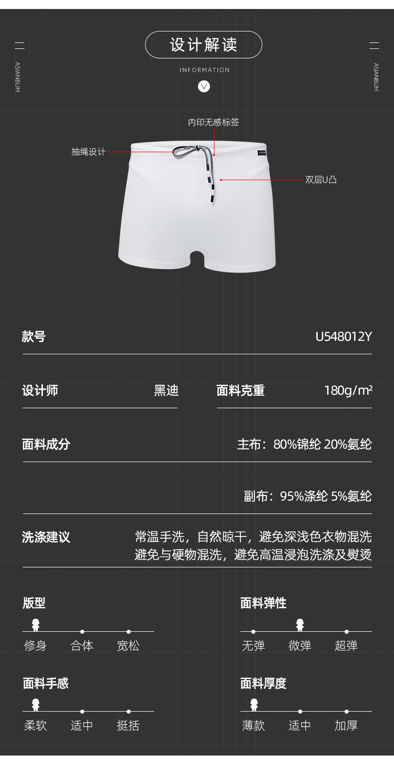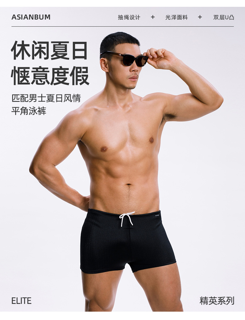 Asianbum 중간 낮은 허리 타이트한 고탄성 속건 섹시 서핑 수영장 온천 플랫 사각 수영 트렁크