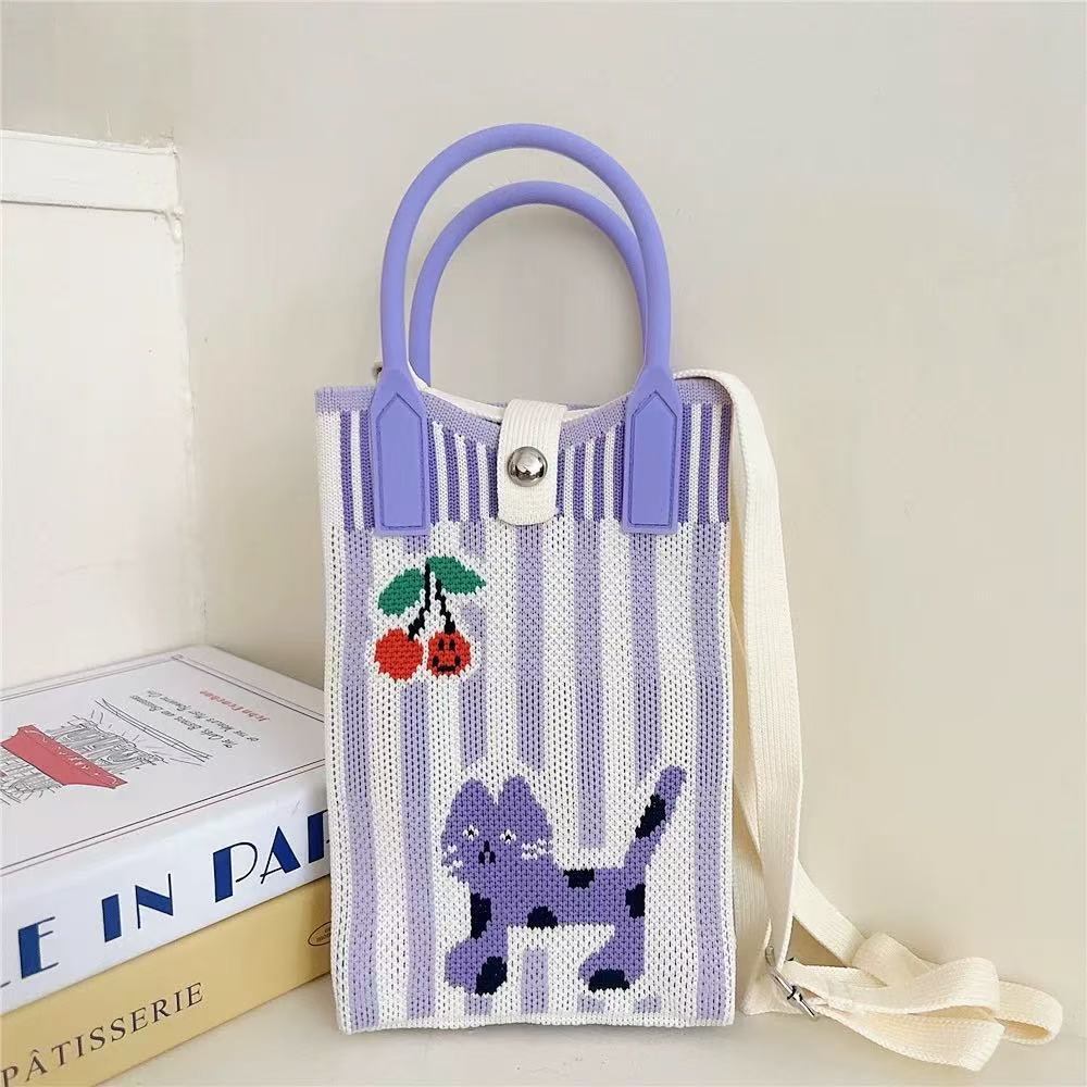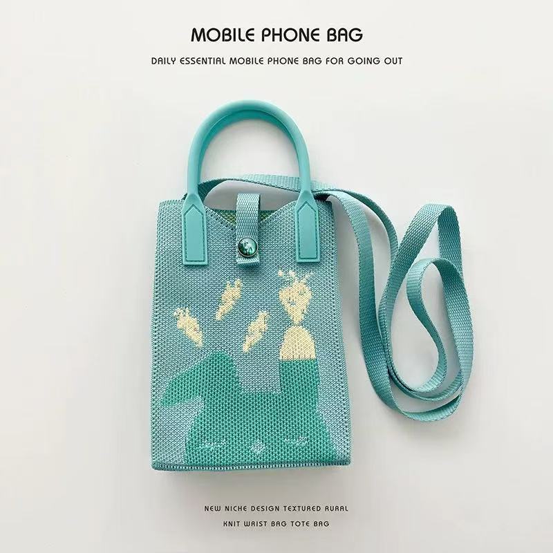 미니 크로스 바디 폰 백 여성 니트 코인 지갑 유행 통근 및 쇼핑을위한 올 매치 귀여운 어깨 핸드백
