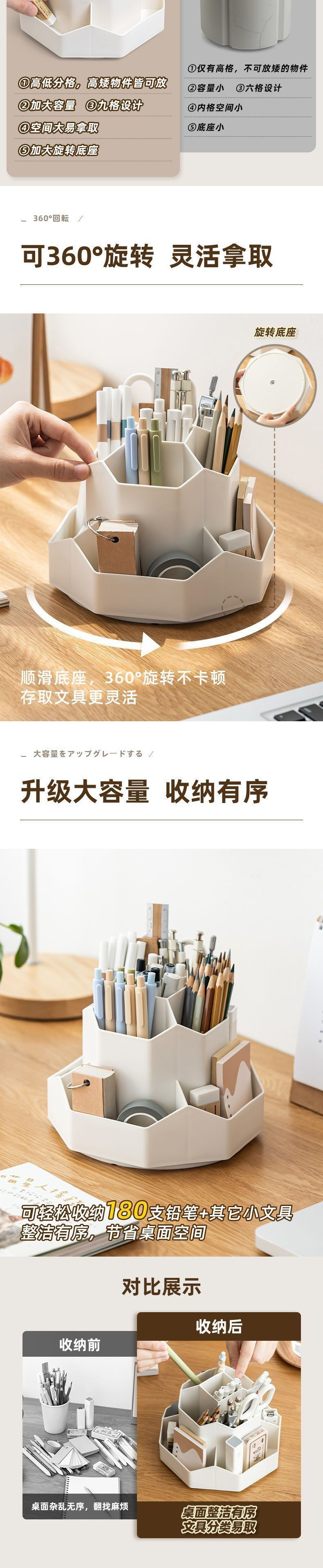 더블 회전 펜 홀더 대용량 더블 레이어 좋은 회전 펜 배럴 귀여운 학생 어린이 소녀 데스크탑 스토리지 박스