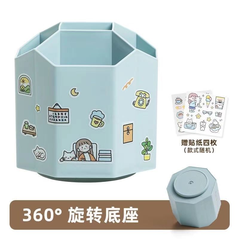 더블 회전 펜 홀더 대용량 더블 레이어 좋은 회전 펜 배럴 귀여운 학생 어린이 소녀 데스크탑 스토리지 박스스토어 가기