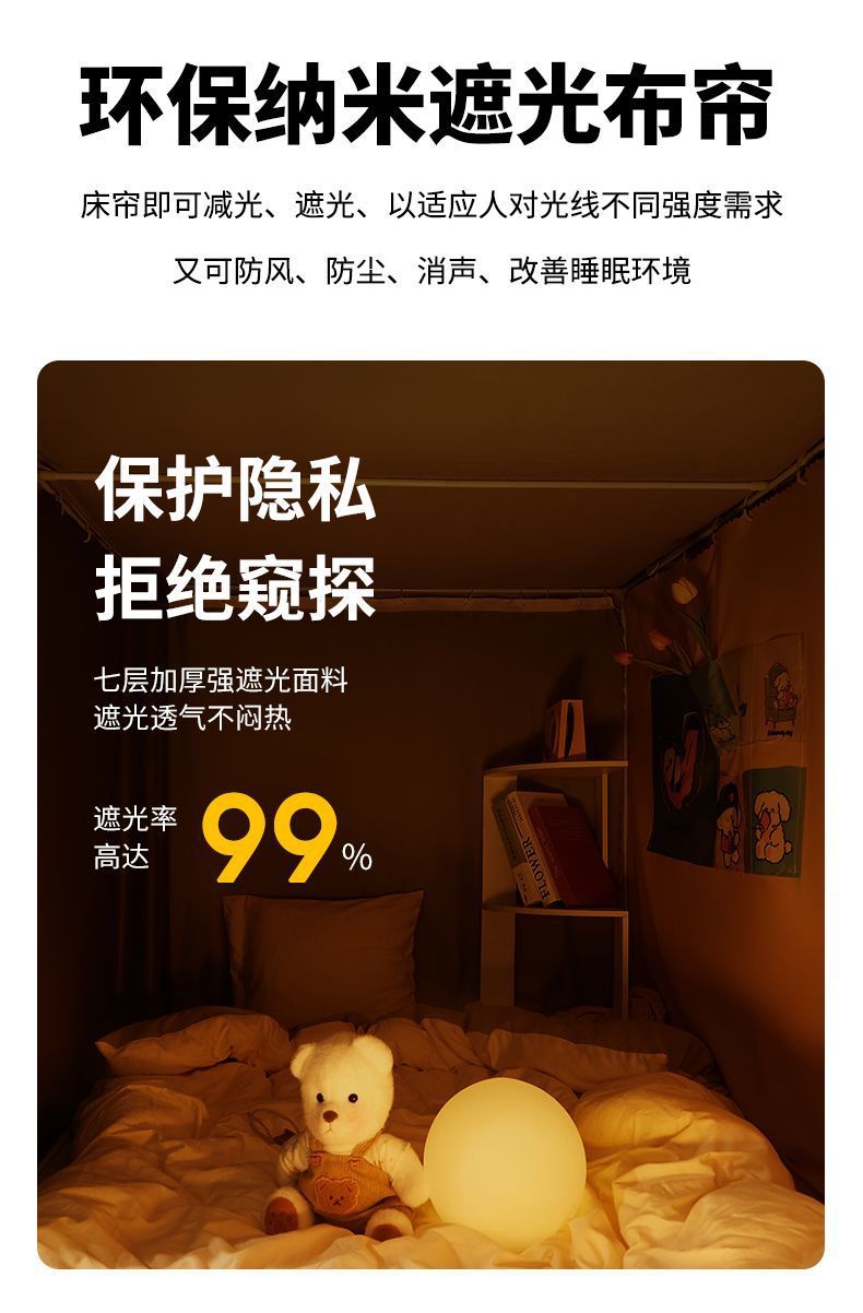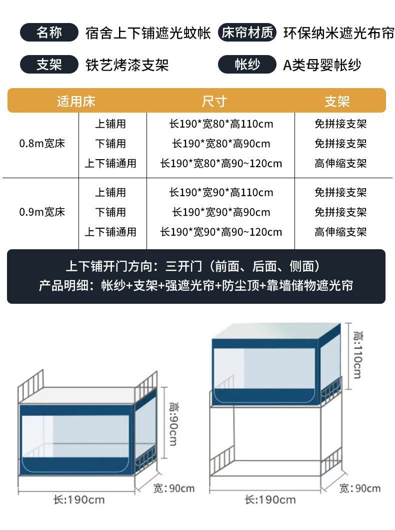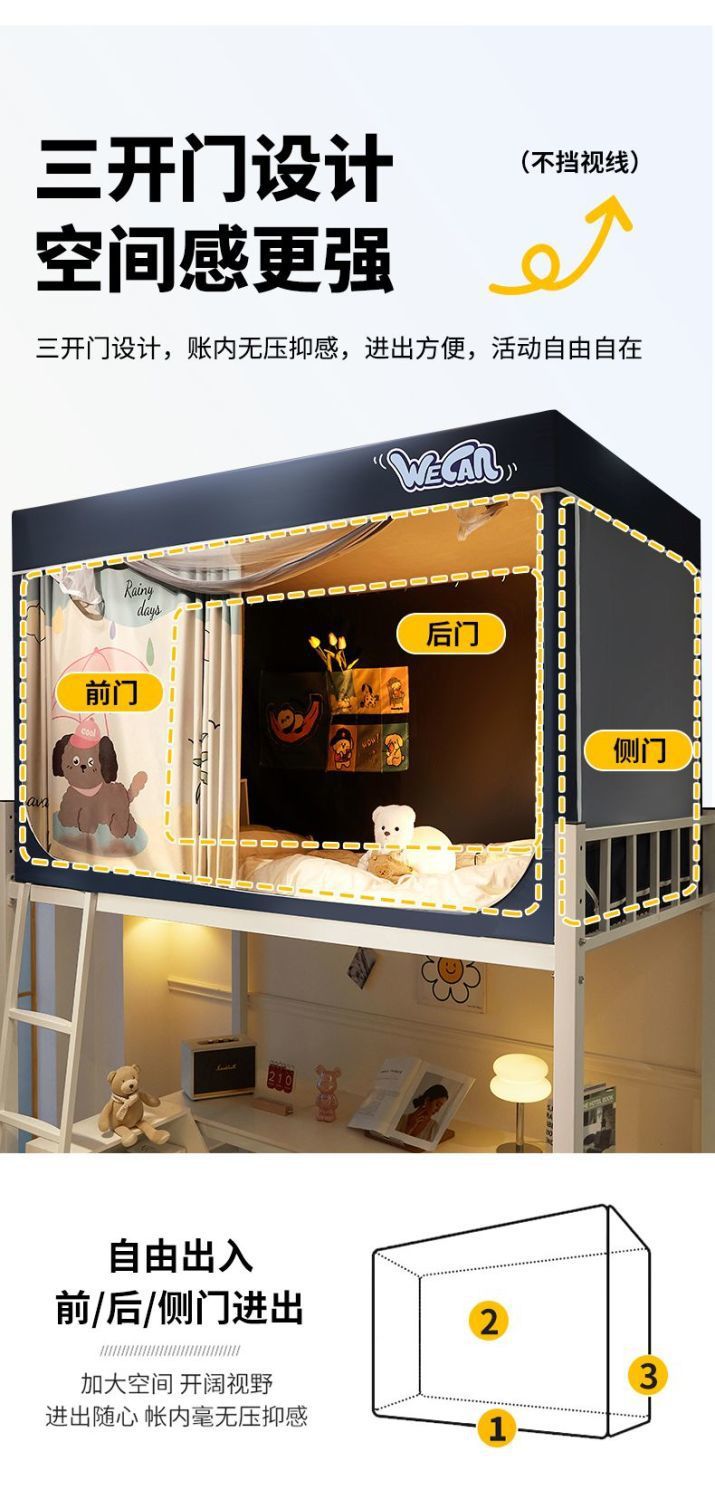 그늘진 대학생 기숙사 특별 모든 것을 포함하는 모기장 침대 커튼 통합 침실 상부 침대와 하부 침대 유니버설스토어 가기