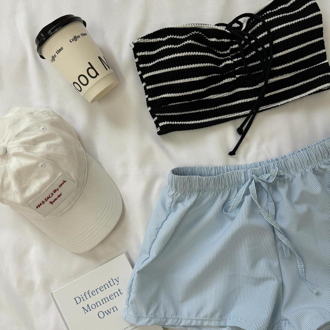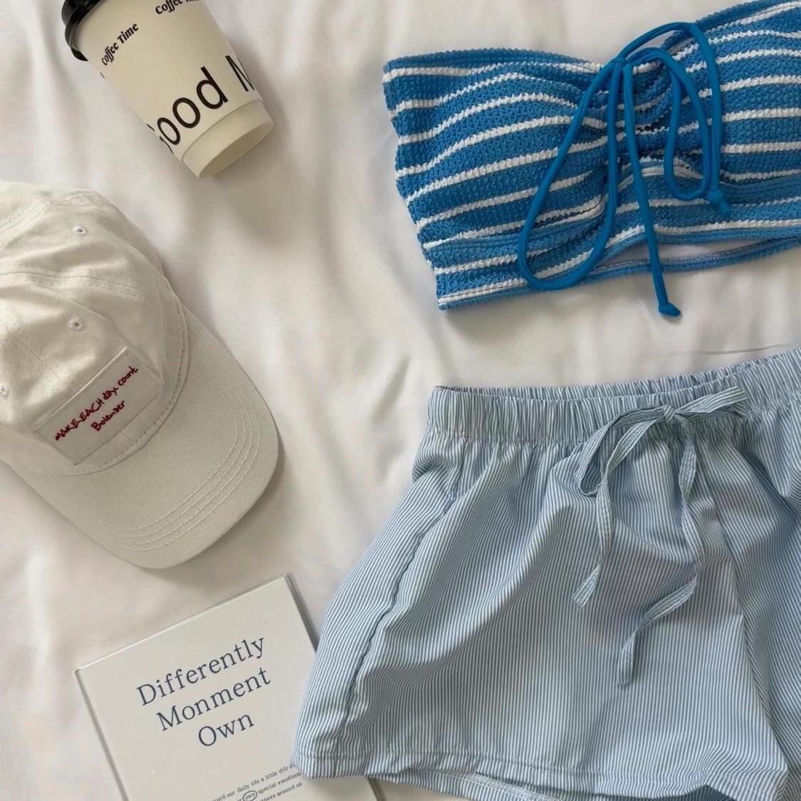 2025 새로운 한국 복고풍 줄무늬 수영복 여성 교수형 목 틈새 온천 비키니 휴가 수영복 소스 공장