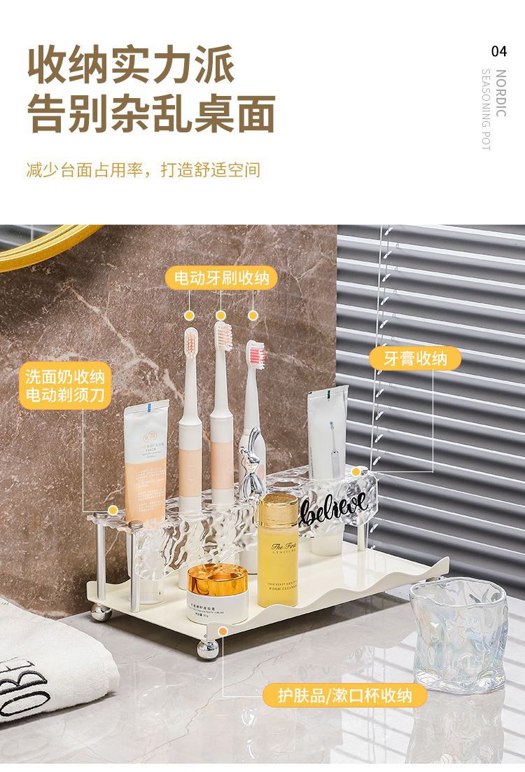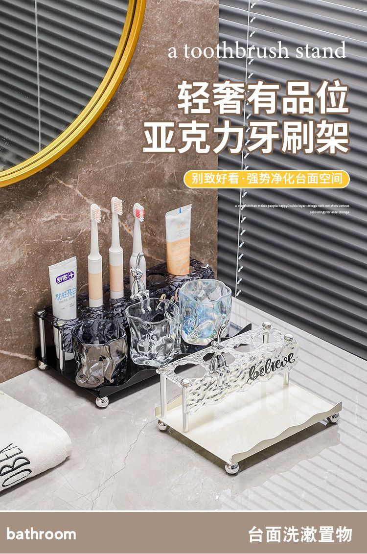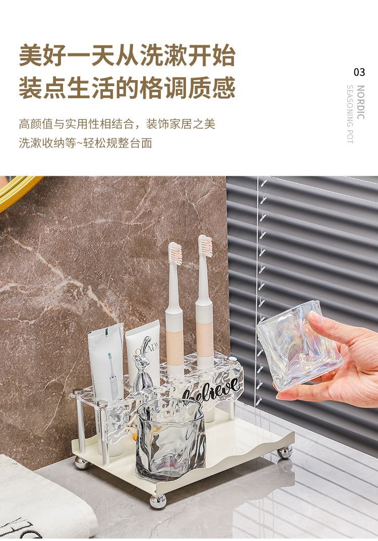 가벼운 고급 칫솔 및 치약 보관함 욕실 조리대 전동 칫솔 홀더 유리 구강 세척제 컵 보관함스토어 가기